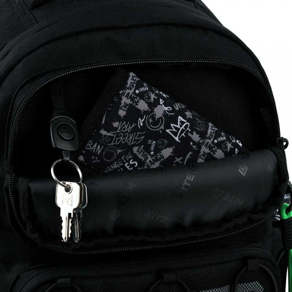 Рюкзак зовні: запатентована ортопедична спинка Ergo Kids; широкі S-подібні лямки; 1 відділення; 3 передні та 2 бічні кишені; світловідбивні елементи; м'яка ущільнена ручка та текстильна петля; знімний нагрудний ремінь; ущільнене дно з захисним покриттям; зносостійкі блискавки, надійна фурнітура. Рюкзак всередині: роздільники з фіксуючою резинкою; внутрішня кишеня на блискавці; знімна ключниця; брендована підкладка; поле для персональних даних. Декор: друк на тасьмі, світловідбивний друк, шнурівка, декоративна вставка-сітка, брелок-підвіска з паракорду