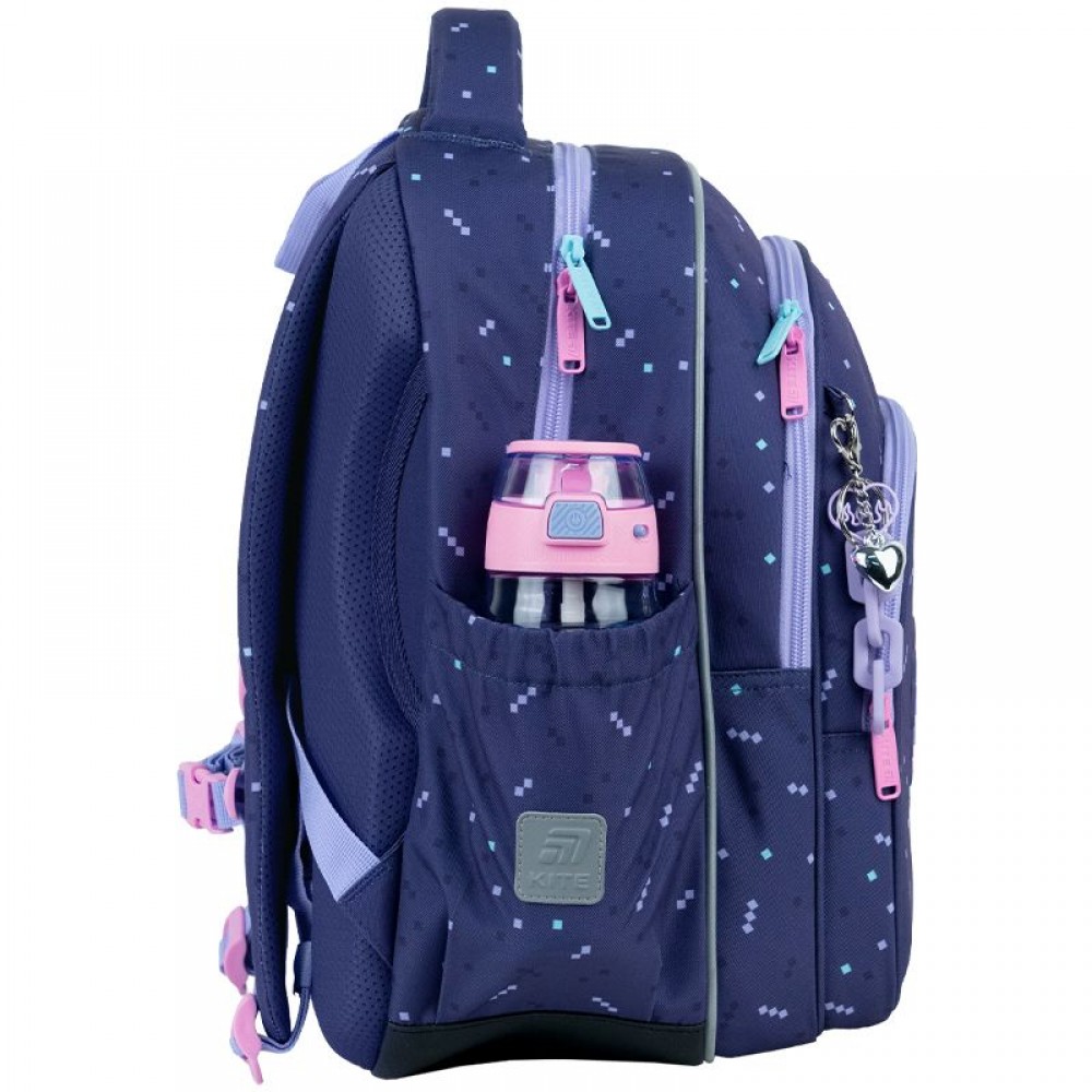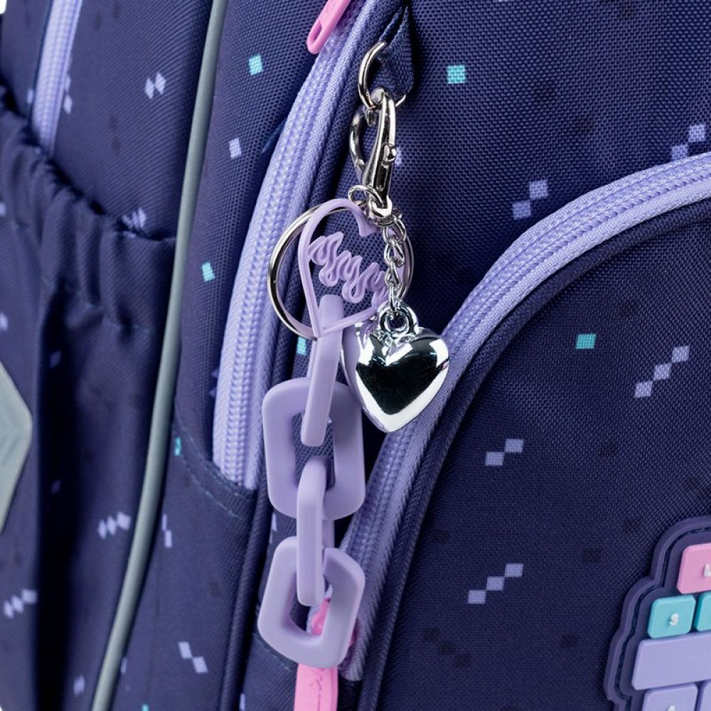 Рюкзак зовні: запатентована ортопедична спинка Ergo Kids; широкі S-подібні лямки; 2 відділення; 1 об'ємна передня кишеня; 2 бічні кишені; світловідбивні елементи; м'яка ущільнена ручка та текстильна петля; знімний нагрудний ремінь; ущільнене дно з захисним покриттям; зносостійкі блискавки, надійна фурнітура. Рюкзак всередині: роздільники з фіксуючою резинкою; кишеня для телефона з плюшевою підкладкою; органайзер; знімна ключниця; брендована підкладка; поле для персональних даних. Декор: 3D гумовий бейдж, сублімаційний друк, брелок-підвіска з комбінованих матеріалів