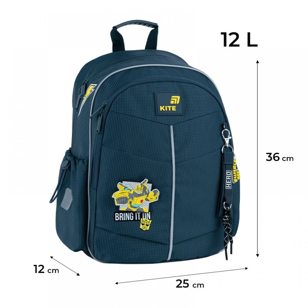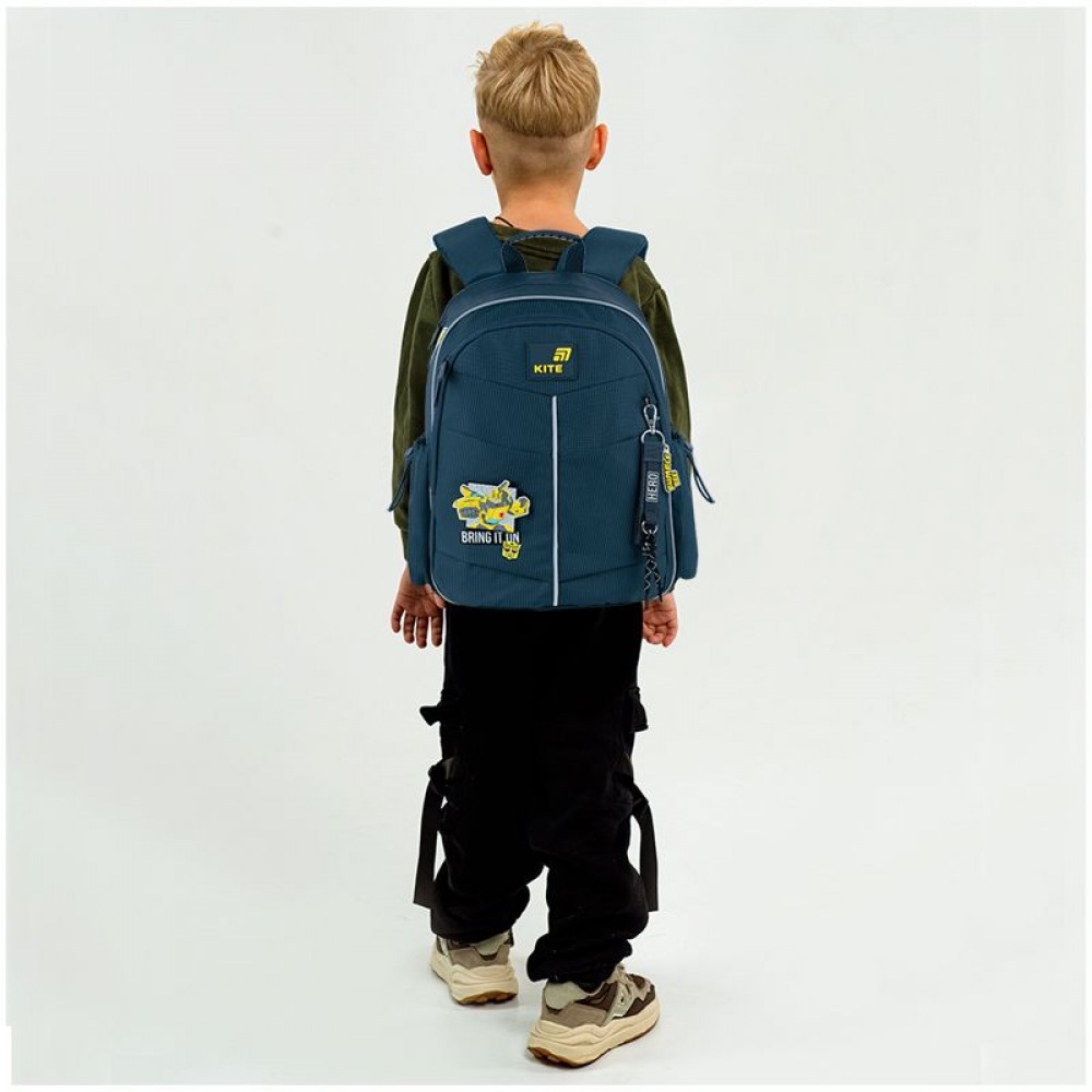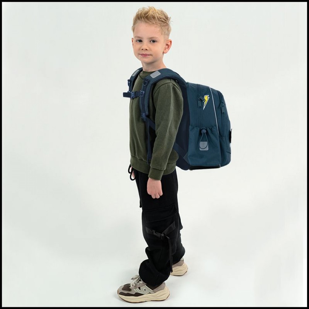 Рюкзак зовні: запатентована ортопедична спинка Ergo Kids; широкі S-подібні лямки; 1 відділення; 1 простора передня кишеня та 2 кишені на магнітах; 2 бічні кишені; світловідбивні елементи; ручка з гумовою вставкою; знімний нагрудний ремінь; ущільнене дно з захисним покриттям; зносостійкі блискавки, надійна фурнітура. Рюкзак всередині: роздільники з фіксуючою резинкою; кишеня для телефона з плюшевою підкладкою; органайзер; знімна ключниця; брендована підкладка; поле для персональних даних. Декор: об'ємний друк, 3D гумовий бейдж на липучці, липучка з друком, брелок-підвіска з комбінованих матеріалів.