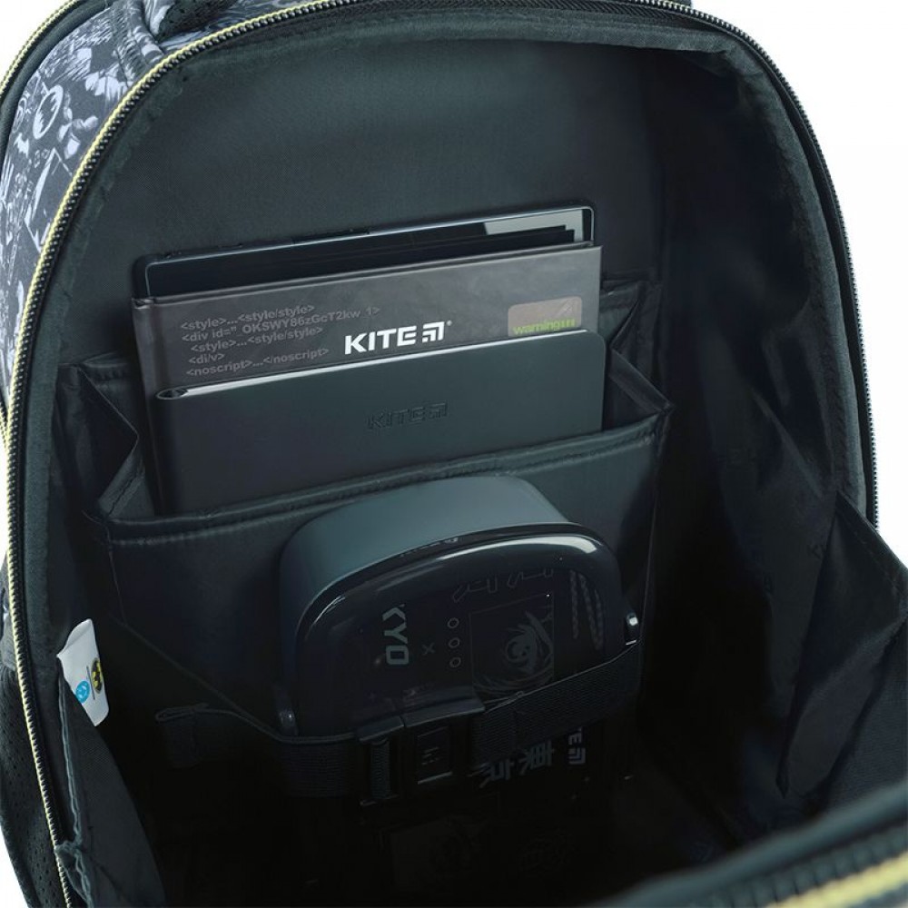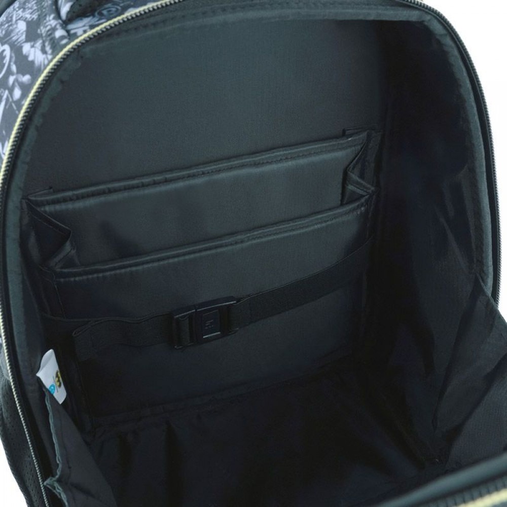 Рюкзак зовні: запатентована ортопедична спинка Ergo Kids; широкі S-подібні лямки; 2 відділення; 2 бічні кишені; світловідбивні елементи; м'яка ущільнена ручка та текстильна петля; знімний нагрудний ремінь; ущільнене дно з захисним покриттям та ніжками; зносостійкі блискавки, надійна фурнітура; Рюкзак всередині: роздільники з фіксуючою резинкою; кишеня для телефона з плюшевою підкладкою; органайзер; знімна ключниця, поле для персональних даних; Декор: 3D тиснення, об’ємний друк, брелок-підвіска з комбінованих матеріалів