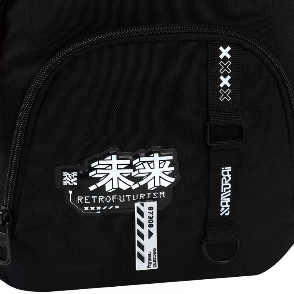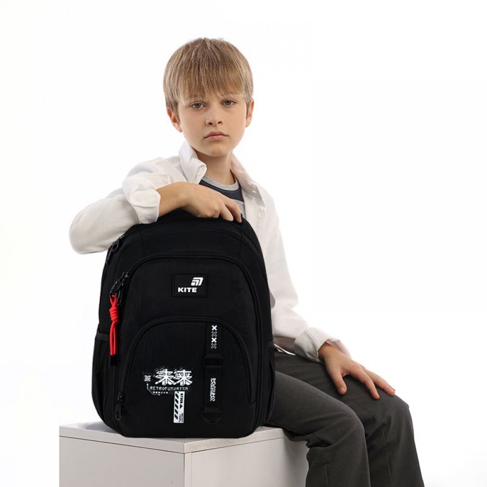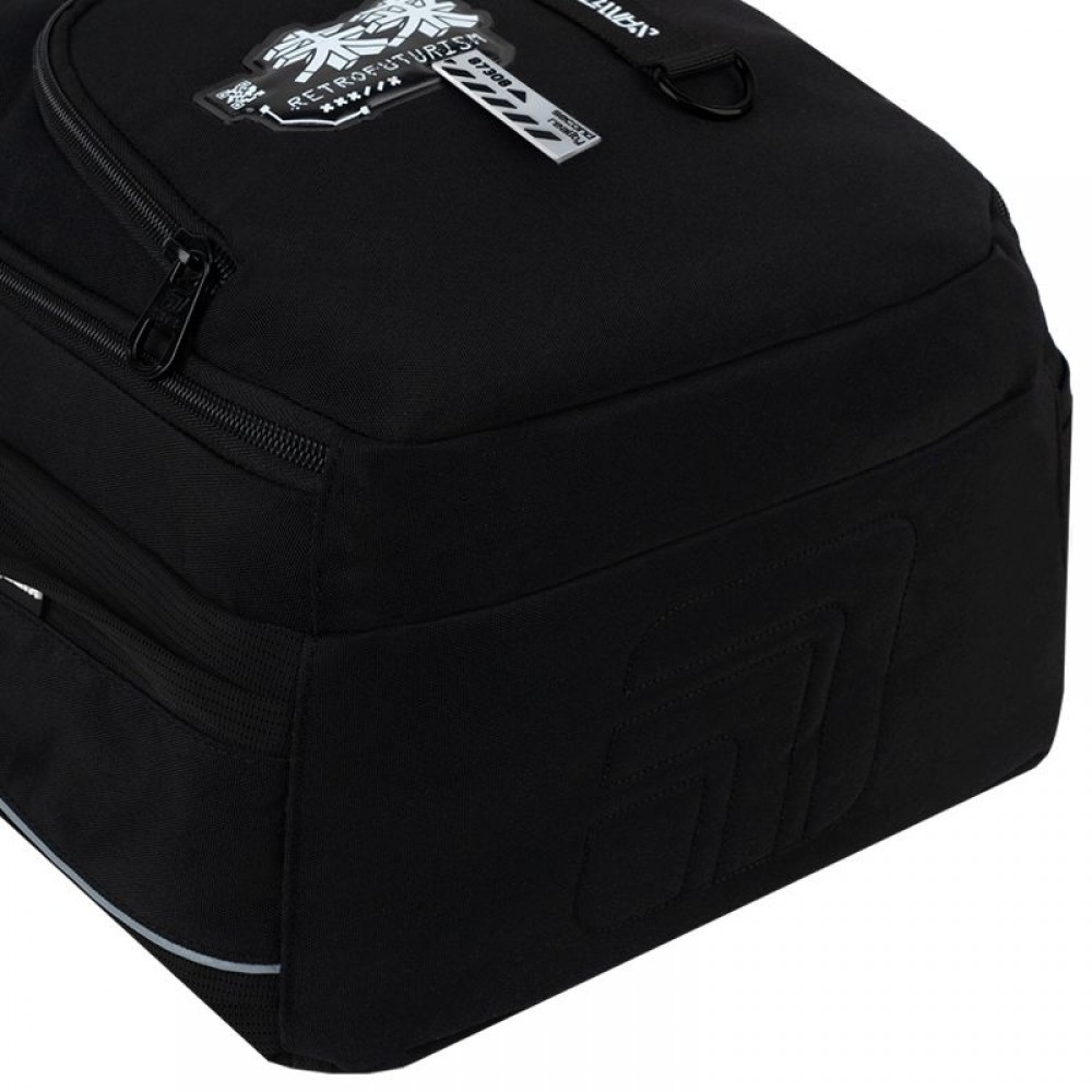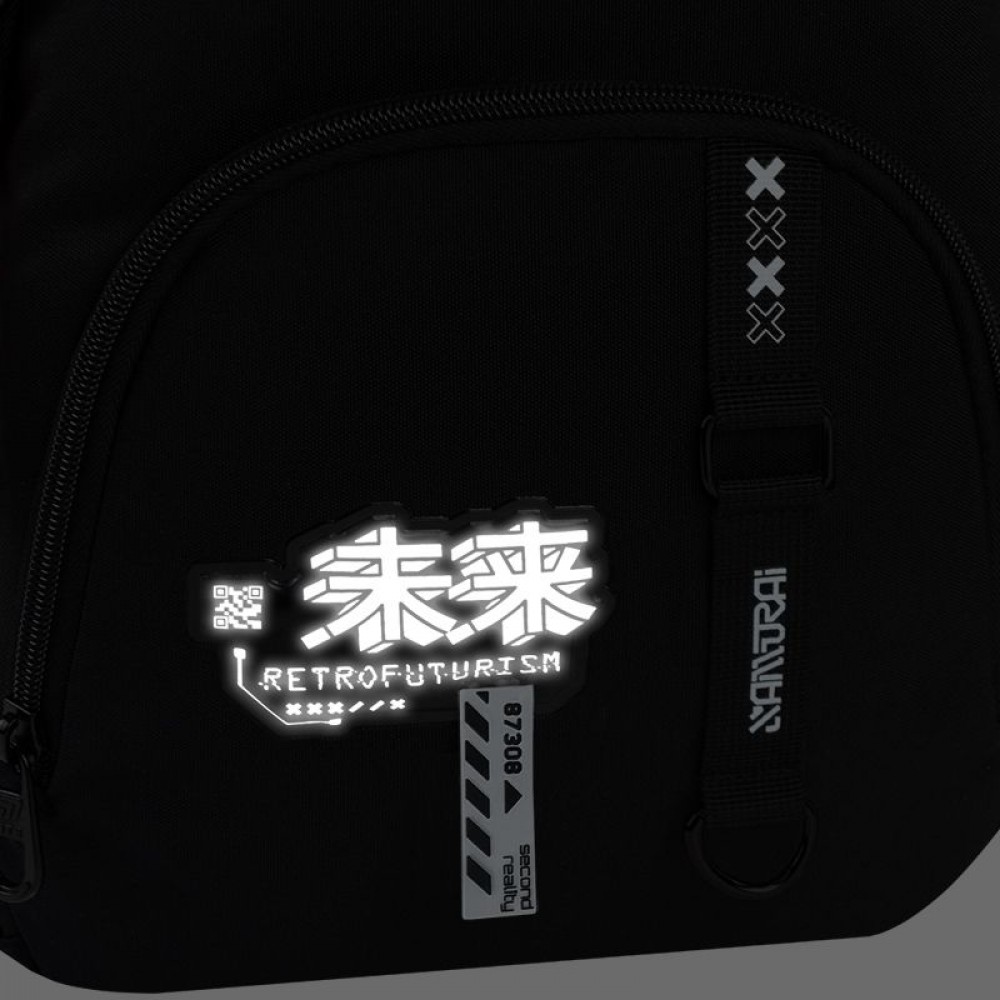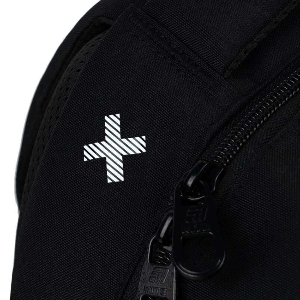 Рюкзак зовні: ортопедична спинка Ergo Teens; широкі S-подібні лямки; 2 відділення; 1 передня та 2 бічні кишені; ущільнена ручка; текстильна ручка-петля; знімний нагрудний ремінь; світловідбивні елементи; зносостійкі блискавки; надійна фурнітура. Рюкзак всередині: роздільники з фіксуючою резинкою; кишеня для планшета; кишеня для телефону з плюшевою підкладкою; органайзер; знімна ключниця; брендована підкладка. Декор: аплікація з комбінованих матеріалів, об'ємний друк, аплікація з тасьми та металевих кілець, брелок-підвіска з паракорду.