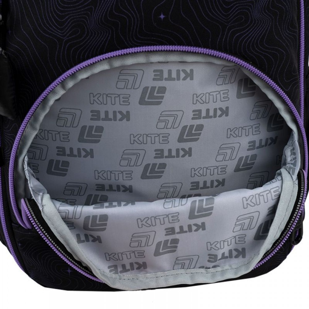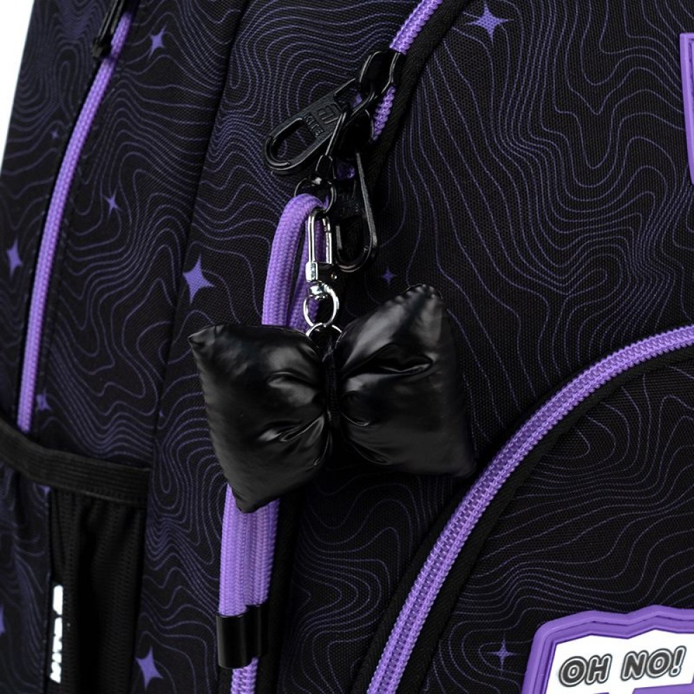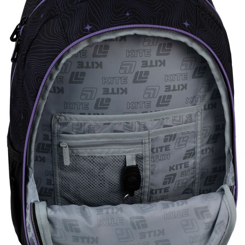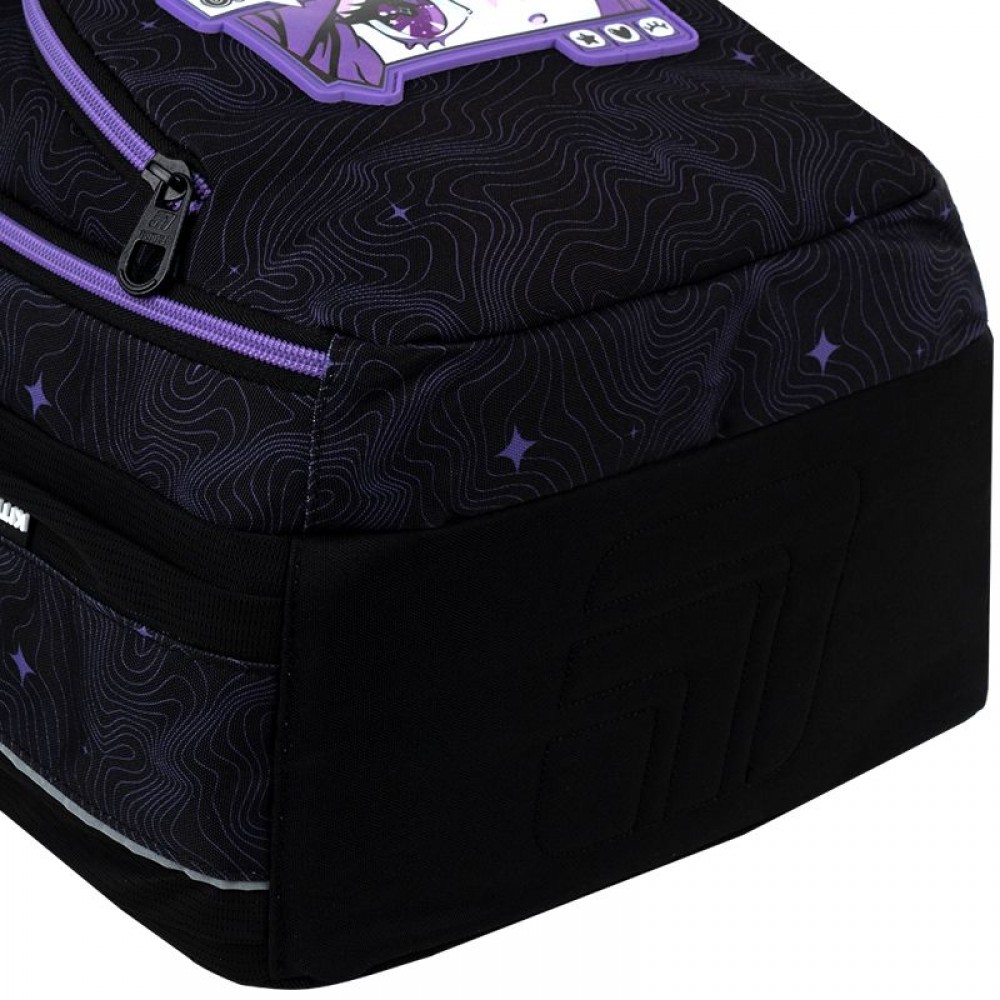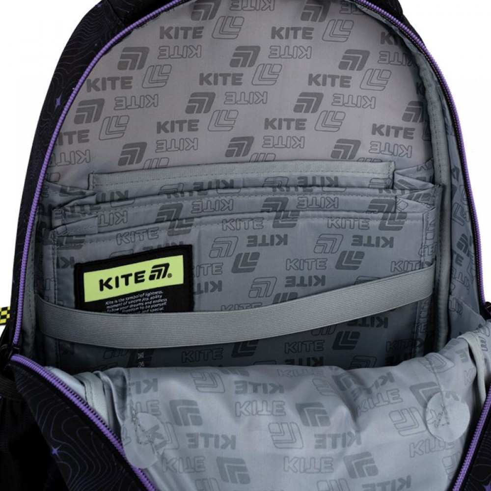 Рюкзак зовні: ортопедична спинка Ergo Teens; широкі S-подібні лямки; 2 відділення; 1 передня та 2 бічні кишені; ущільнена ручка; текстильна ручка-петля; знімний нагрудний ремінь; світловідбивні елементи; зносостійкі блискавки; надійна фурнітура. Рюкзак всередині: роздільники з фіксуючою резинкою; кишеня для планшета; кишеня для телефону з плюшевою підкладкою; органайзер; знімна ключниця; брендована підкладка. Декор: об'ємний гумовий бейдж з друком, м'який брелок-підвіска з комбінованих матеріаліві.