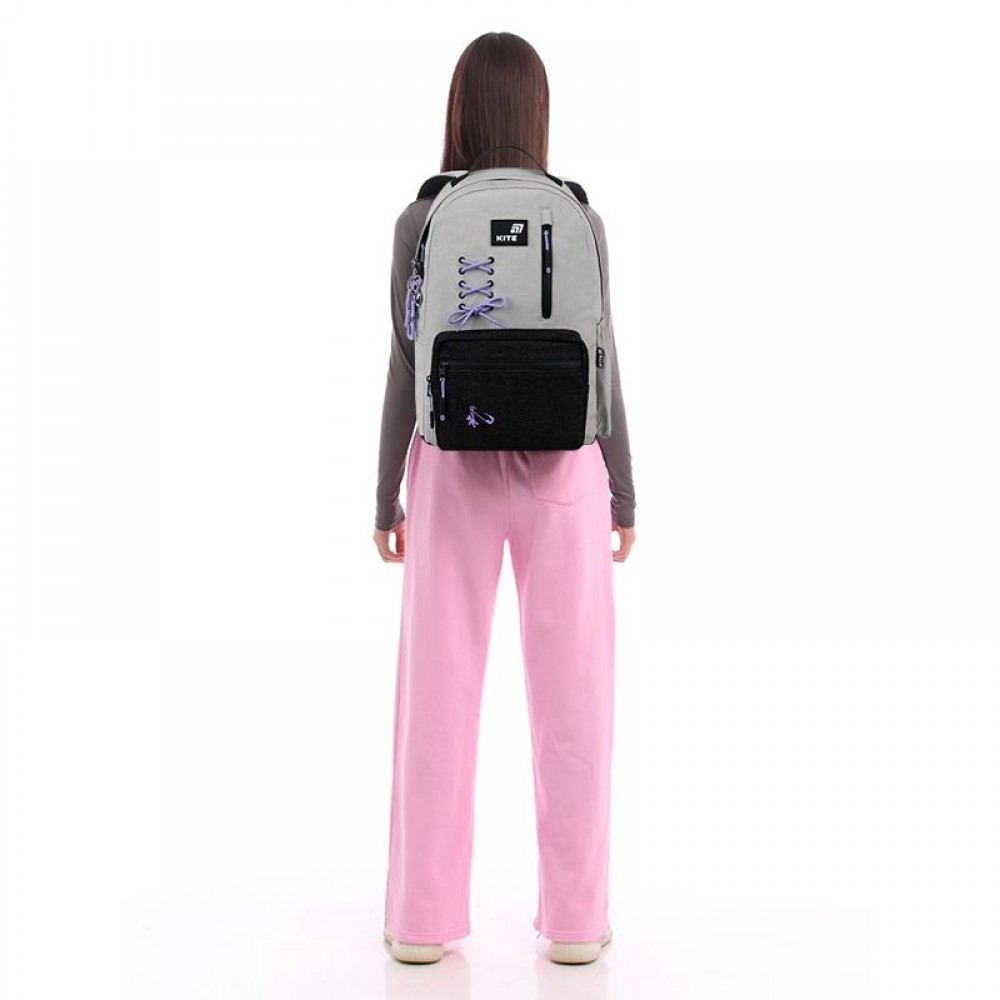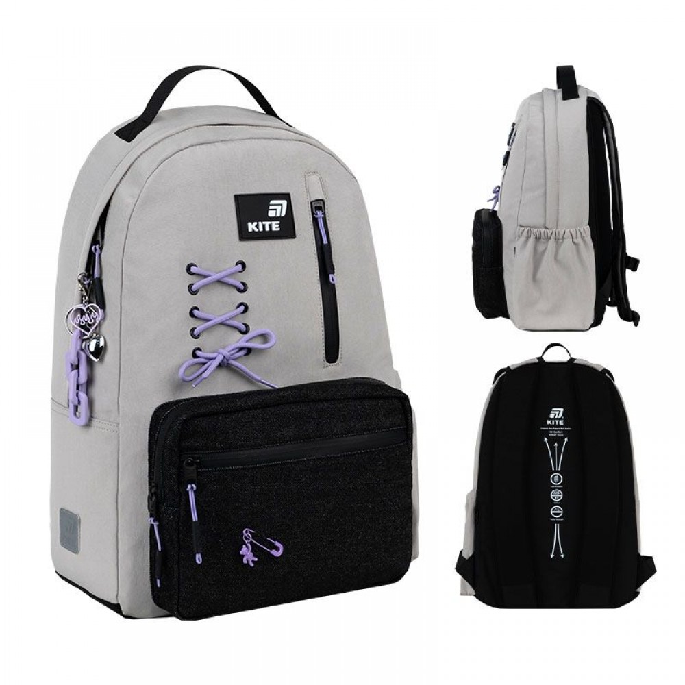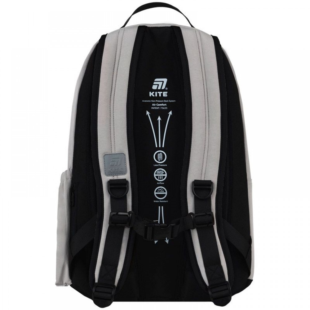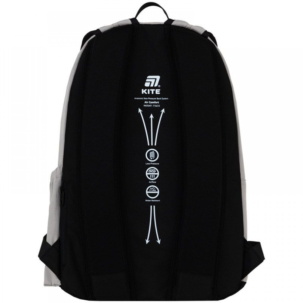 Рюкзак зовні: анатомічна спинка Air Comfort; широкі S-подібні лямки; 1 відділення; 3 передні та 1 бічна кишеня; ручка-петля; знімний нагрудний ремінь; світловідбивні елементи; зносостійкі блискавки; надійна фурнітура. Рюкзак всередині: кишеня для ноутбука; кишеня для планшета; кишеня для телефону з плюшевою підкладкою; органайзер; знімна брендована ключниця; брендована підкладка. Декор: рюкзак виконаний із поліестеру з жатим ефектом, декоративна шнурівка, кишеня з вимитого джинсу, декоративна металева булавка, брелок-підвіска з комбінованих матеріалів.