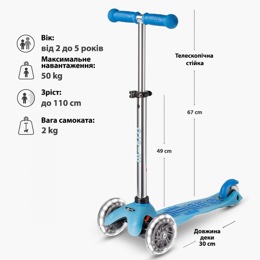 Дитячий самокат - це не лише активне фізичне навантаження. З його допомогою у дитини покращуються баланс, координація і моторика. І для цього самокат має бути високотехнологічним і безпечним. Тому самокати Micro Mini Deluxe Glow LED мають ряд особливостей: