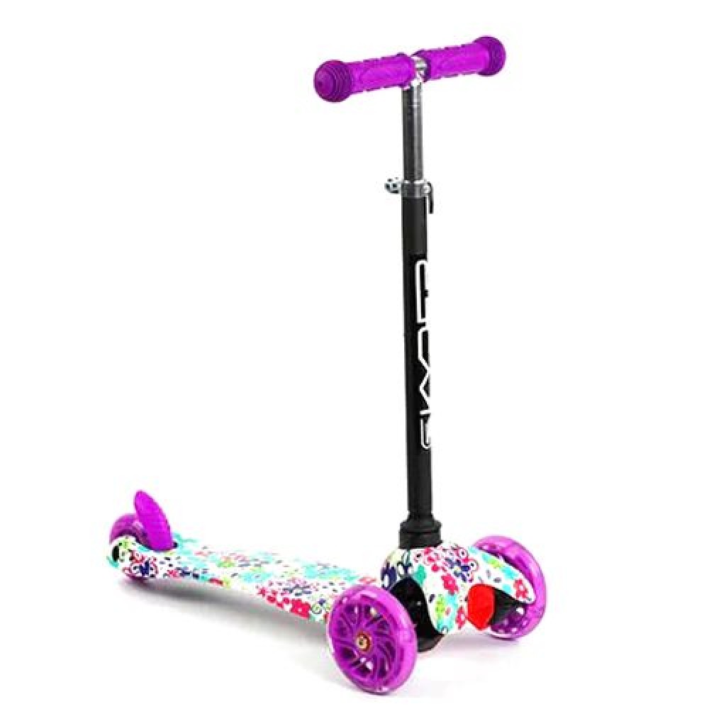 Триколісний дитячий самокат забезпечує яскраве проведення часу та позитивні емоції для вашої дитини. Міцне алюмінієве Т-подібне кермо надійно зʼєднане з рамою, забезпечуючи стабільність під час руху. Регульована висота керма з додатковою скобою гарантує комфорт та безпеку. Ручки з якісної гуми з текстурою, що запобігає ковзанню. Поворот здійснюється нахилом керма. Заднє ножне гальмо.