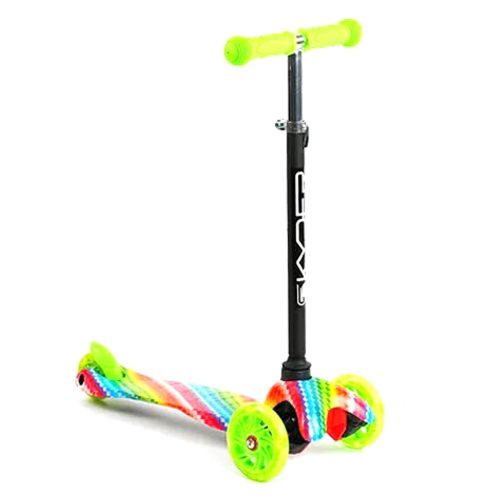 Триколісний дитячий самокат забезпечує яскраве проведення часу та позитивні емоції для вашої дитини. Міцне алюмінієве Т-подібне кермо надійно зʼєднане з рамою, забезпечуючи стабільність під час руху. Регульована висота керма з додатковою скобою гарантує комфорт та безпеку. Ручки з якісної гуми з текстурою, що запобігає ковзанню. Поворот здійснюється нахилом керма. Заднє ножне гальмо.