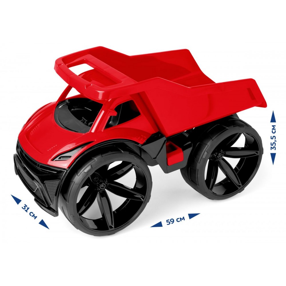 MAXIMUS - нова серія сучасних транспортних засобів майбутнього, синонім сучасності, сміливого дизайну і високої якості виконання деталей. MAXIMUS це великий самоскид червоного кольору, який відзначається: сучасним дизайном, стильними лінією кузова з великими матовими колами та прекрасним оформленням деталей. Додатково має рухомий фіксатор, що дає змогу відкривати кузов. Можна використовувати для перевезення піску або інших речей. Транспортний засіб має 59 см в довжину Що вирізняє нову лінію транспортних засобів MAXIMUS? Сучасна лінія кузова транспортних засобів, з її футуристичним виглядом і динамічними лініями, привертає увагу дітей, надихає до створення власних, креативних сценаріїв забав. Футуристичний дизайн сприяє розвитку уяви під час забави. Стильний сучасний дизайн кабіни, та решітка бампера у вигляді сот , великі матові колеса з блискучими контрастними дисками. Простота конструкції і не велика вага дозволяє дітям легко переносити і маневрувати транспортними засобами однаково в будинку та на вулиці Грайте та розвивайтесь чудовими і безпечними автомобілями TM WADER
