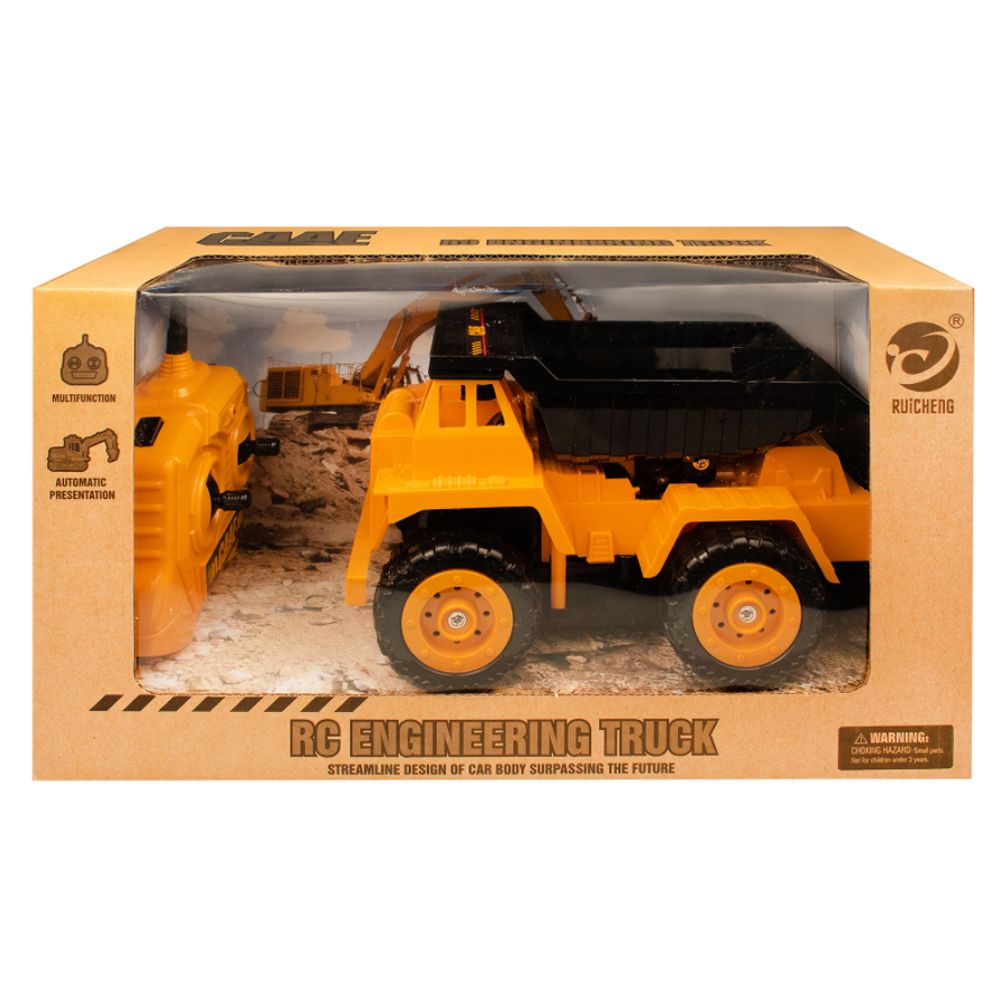 Інтерактивна іграшка на радіокеруванні "Самоскид". Техніка добре деталізована та виконана в масштабі 1:32, копією справжньої машини. Іграшка керується з пульта дистанційного керування. Є функції їзди вперед/назад, рух колесами (розташованими з одного боку машинки), автоматичний та ручний рух ковшем. Розмір - 19 х 11 х 11 см. Пульт та самоскид працюють на батарейках (не йдуть у комплекті).