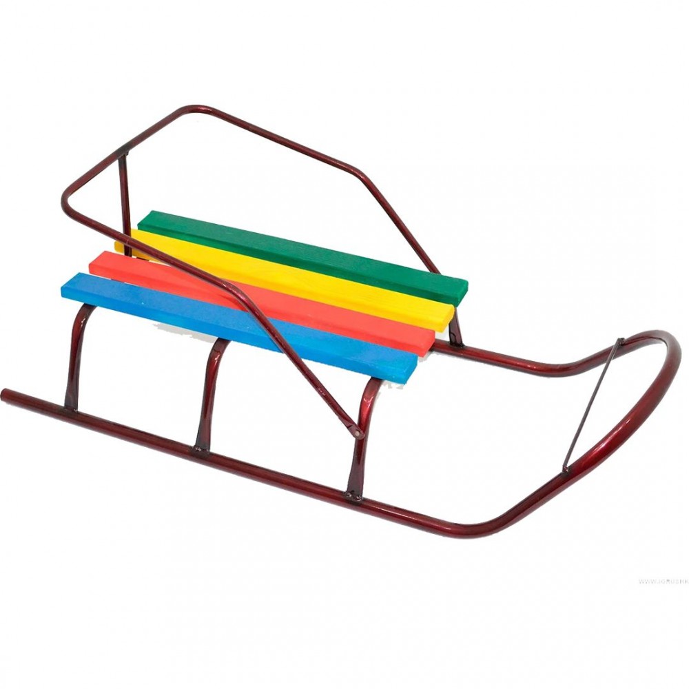 Класичні сани - металеві труби з кольоровими деревʼяними планками. Оснащені зручною спинкою, що забезпечує дитині додатковий комфорт та безпеку. Довжина - 90 см, ширина - 40 см, висота - 20 без спинки та 36 зі спинкою.