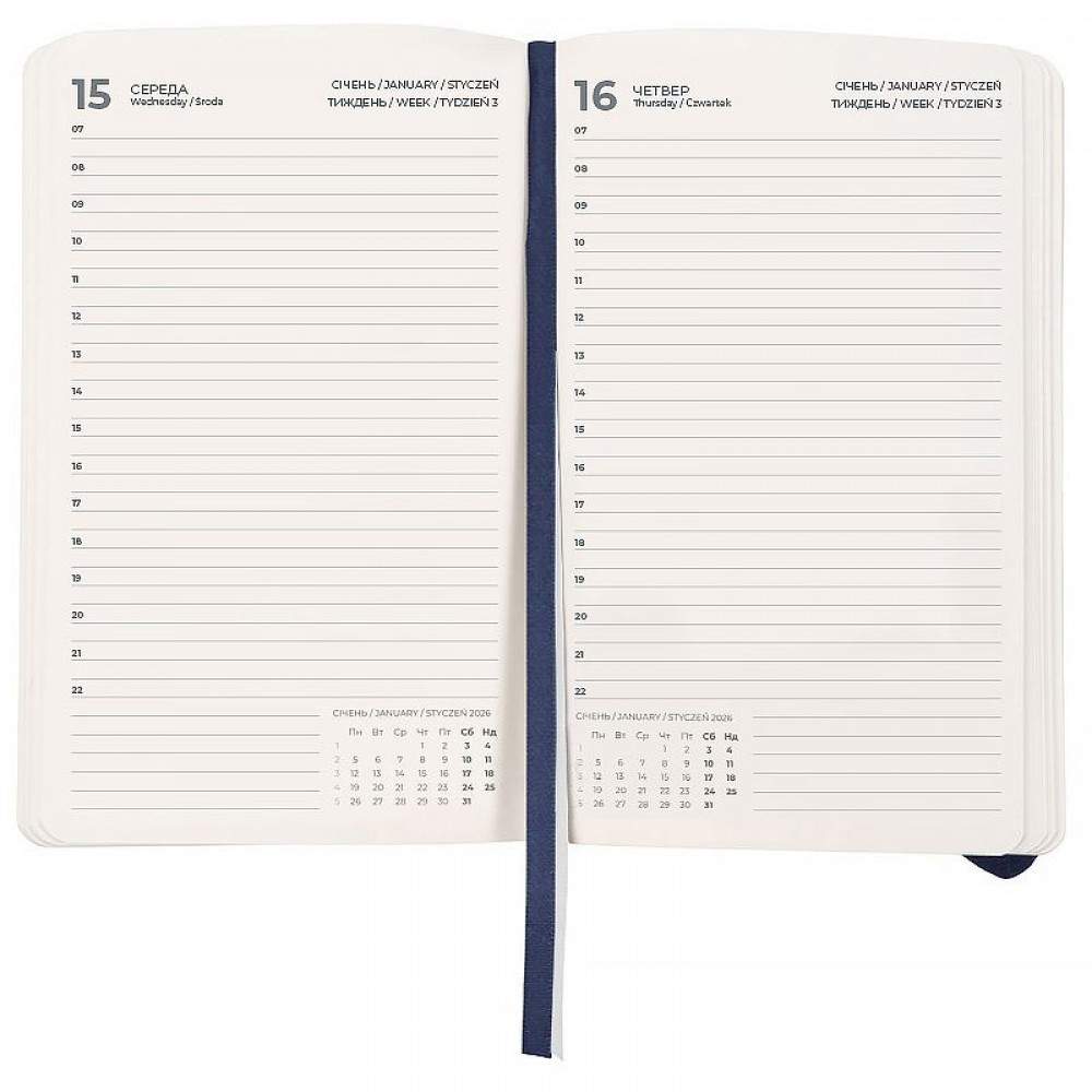 Зручний щоденник Axent із серії Pocket Strong в твердій обкладинці. Використовується для щоденних записів, а також ділових та творчих задач. Тверда обкладинка допомагає зберегти акуратний та презентабельний вигляд протягом довгого часу. Якісний кремовий папір щільністю 80 г/м2 добре вбирає чорнило та забезпечує комфортне письмо. Зручно робити записи, креслити та малювати. Щоденник має датований блок у лінію на кожний день. Внутрішній блок українською мовою. Щоденник містить календар на 2026-2027 рік, загальний тижневий розклад, інформацію про свята, важливі номери телефонів, часові пояси країн світу, одиниці вимірювання, шкалу температур. Дві різнокольорові закладки-ляссе дозволяють швидко знайти та відкрити потрібні сторінки. Містить 168 аркушів, розмір - 104*146 мм. Петлі для ручки немає. Кишеня на форзаці.