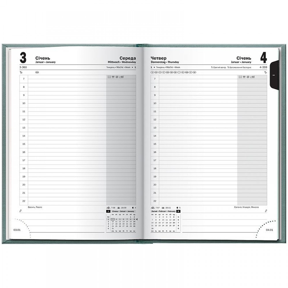 Датований щоденник BRUNNEN 2026 Стандарт — стильна класична модель. Оптимізований простір для записів та зручна навігація. Особливості: Три мови: українська, англійська, німецька. Загальна кількість сторінок — 336. Одна сторінка — один день. Організатор часу з 07:00 до 22:00. Якісний друк у сірому кольорі. 4 сторінки для загального планування на рік. Розширений інформаційний блок. Білий європейський папір 70 г/м2. Закладка-лясе та відривні куточки з датою. Стильна обкладинка Linesse. Золоте тиснення.