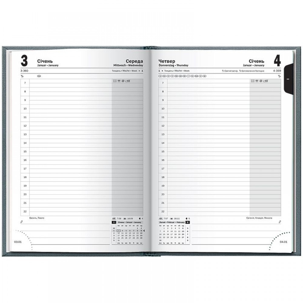 Датований щоденник BRUNNEN 2026 Стандарт — стильна класична модель. Оптимізований простір для записів та зручна навігація. Особливості: Три мови: українська, англійська, німецька. Загальна кількість сторінок — 336. Одна сторінка — один день. Організатор часу з 07:00 до 22:00. Якісний друк у сірому кольорі. 4 сторінки для загального планування на рік. Розширений інформаційний блок. Білий європейський папір 70 г/м2. Закладка-лясе та відривні куточки з датою. Стильна обкладинка Linesse. Срібне тиснення.