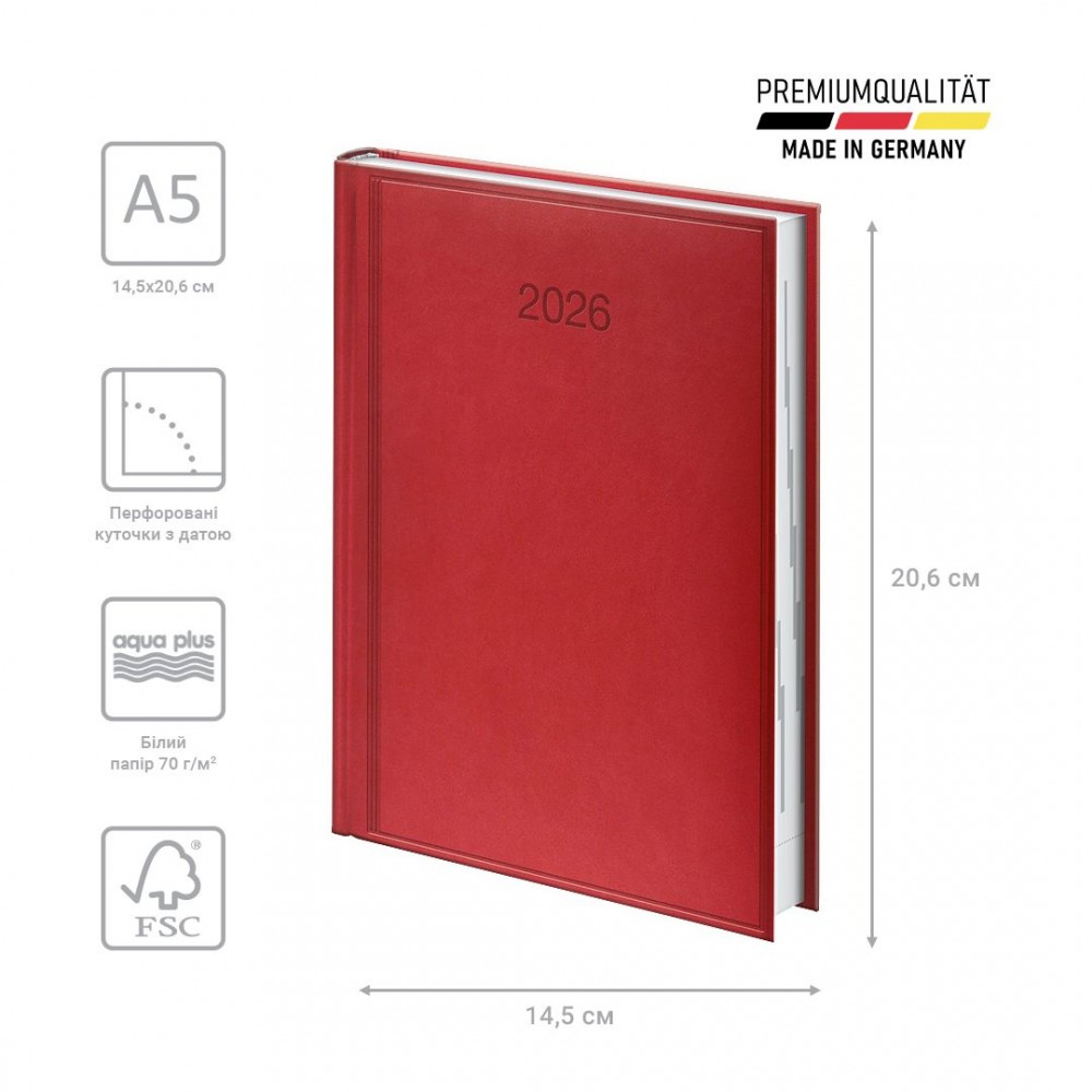 Датований щоденник BRUNNEN 2026 Стандарт — стильна класична модель. Оптимізований простір для записів та зручна навігація. Особливості: Три мови: українська, англійська, німецька. Загальна кількість сторінок — 336. Одна сторінка — один день. Організатор часу з 07:00 до 22:00. Якісний друк у сірому кольорі. 4 сторінки для загального планування на рік. Розширений інформаційний блок. Білий європейський папір 70 г/м2. Закладка-лясе та відривні куточки з датою. Стильна обкладинка Torino. Сліпе тиснення.