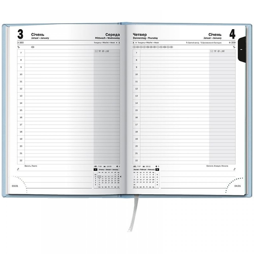 Датований щоденник BRUNNEN 2026 Стандарт — стильна класична модель. Оптимізований простір для записів та зручна навігація. Особливості: Три мови: українська, англійська, німецька. Загальна кількість сторінок — 336. Одна сторінка — один день. Організатор часу з 07:00 до 22:00. Якісний друк у сірому кольорі. 4 сторінки для загального планування на рік. Розширений інформаційний блок. Білий європейський папір 70 г/м2. Закладка-лясе та відривні куточки з датою. Стильна обкладинка Torino Trend. Біле тиснення.
