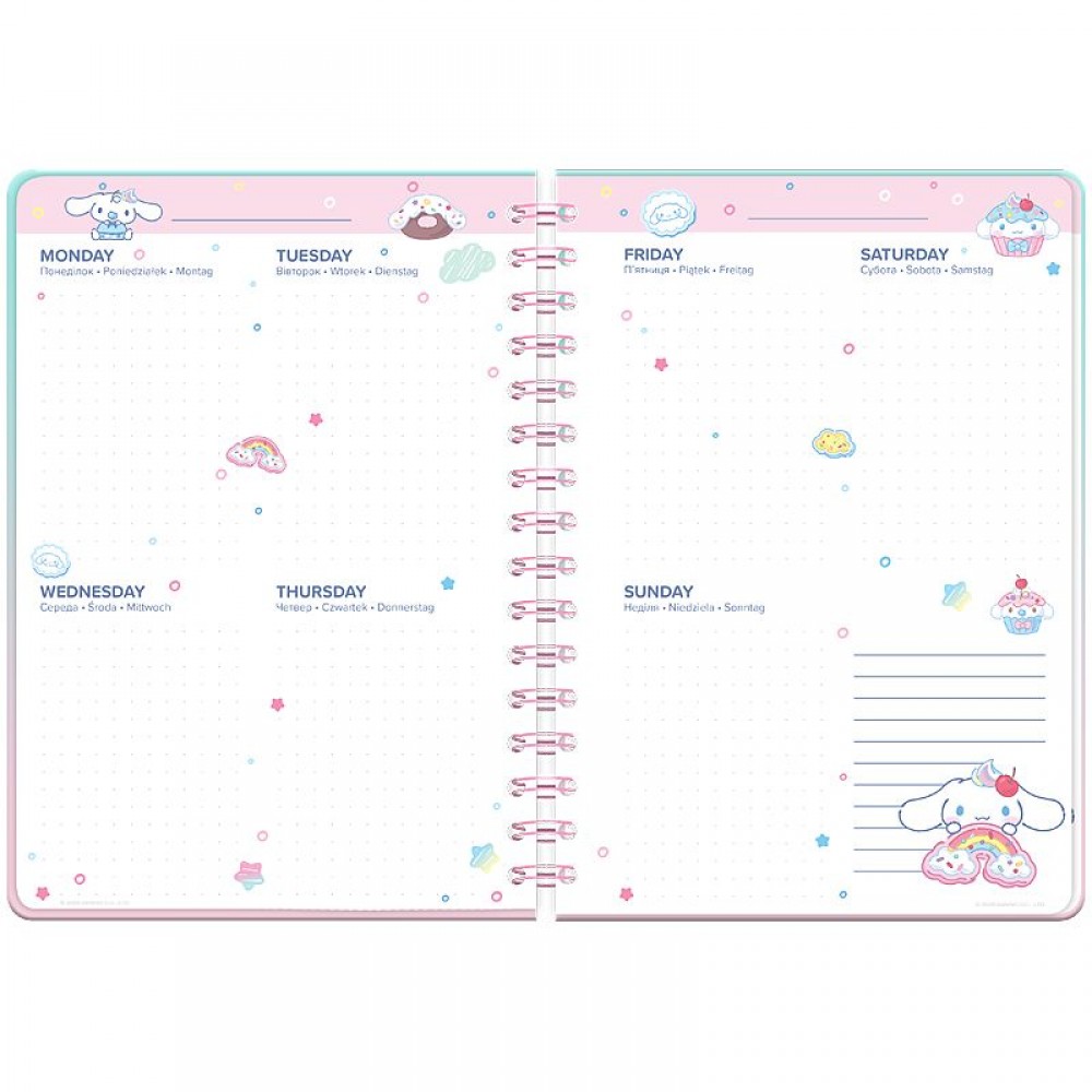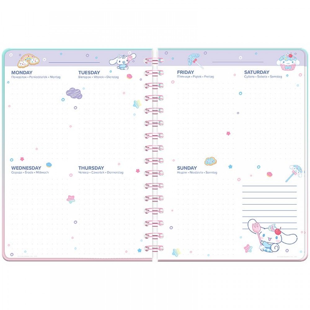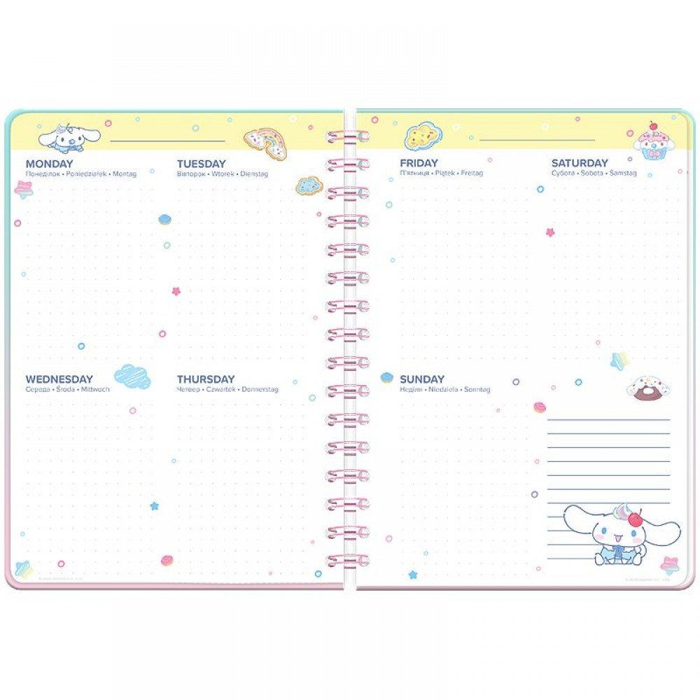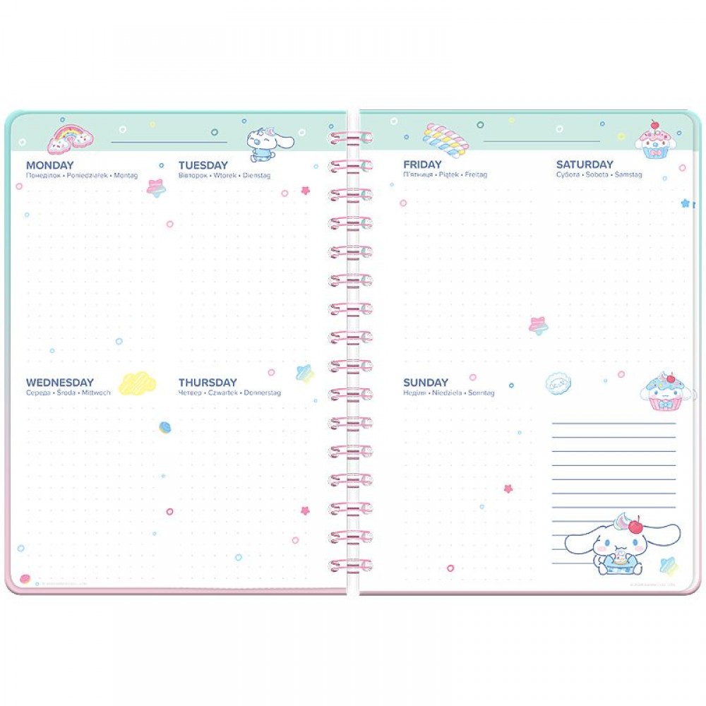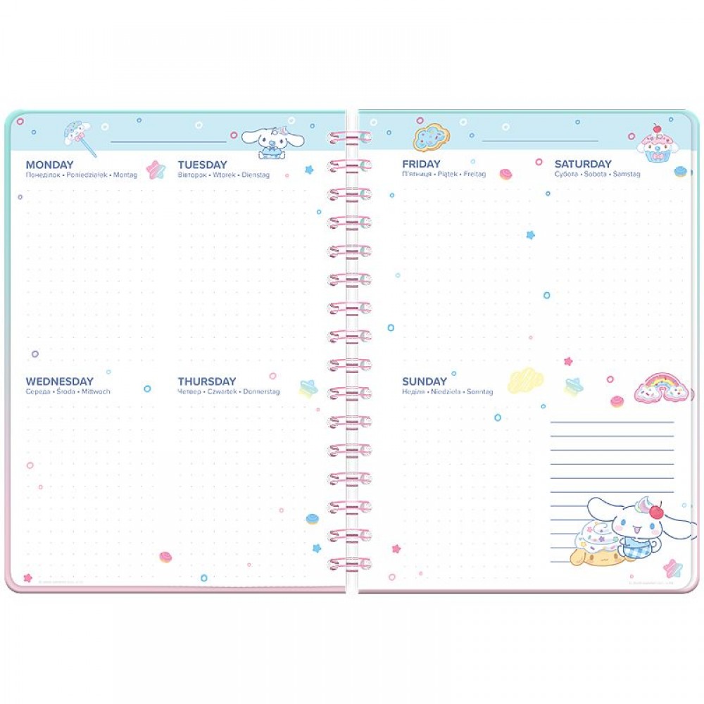 Щоденник-планер на спіралі. Тверда картонна обкладинка з фіксуючою резинкою. Ефект на обкладинці: голографічна обкладинка Всередині: • Розклад на тиждень; • Тиждень на двох сторінках, 5 різних дизайнів розворотів тижня; • 4 кольорові розворити в дизайн ліцензії; • 2 сторінки із стікерами; • Карман для зберігання дрібниць; Внутрішній блок : англійська, українська, польська, німецька. Формат А5, 138 стр., щільність аркушів 80г/м2.