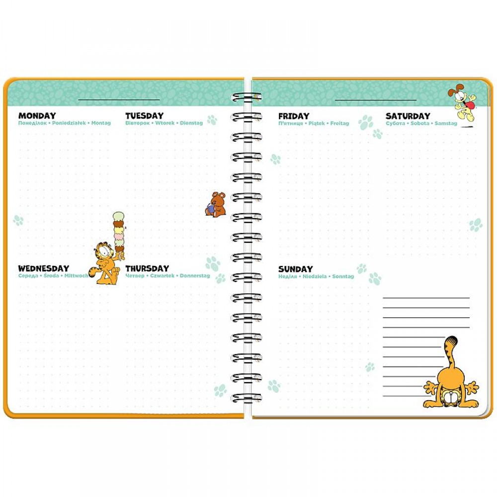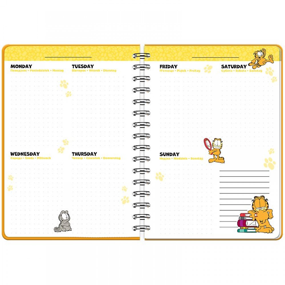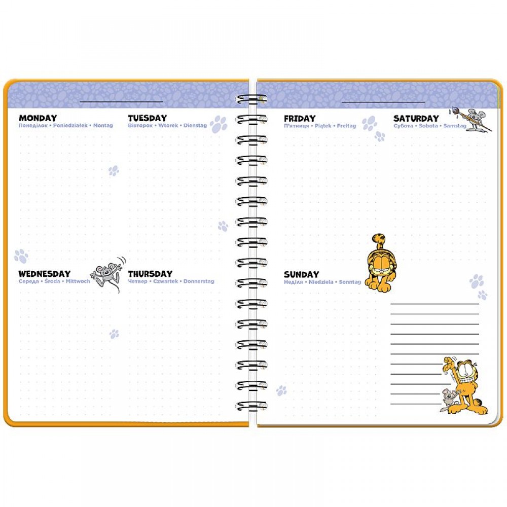 Щоденник-планер на спіралі. Тверда картонна обкладинка з фіксуючою резинкою. Ефект на обкладинці: голографічна обкладинка Всередині: • Розклад на тиждень; • Тиждень на двох сторінках, 5 різних дизайнів розворотів тижня; • 4 кольорові розворити в дизайн ліцензії; • 2 сторінки із стікерами; • Карман для зберігання дрібниць; Внутрішній блок : англійська, українська, польська, німецька. Формат А5, 138 стр., щільність аркушів 80г/м2.
