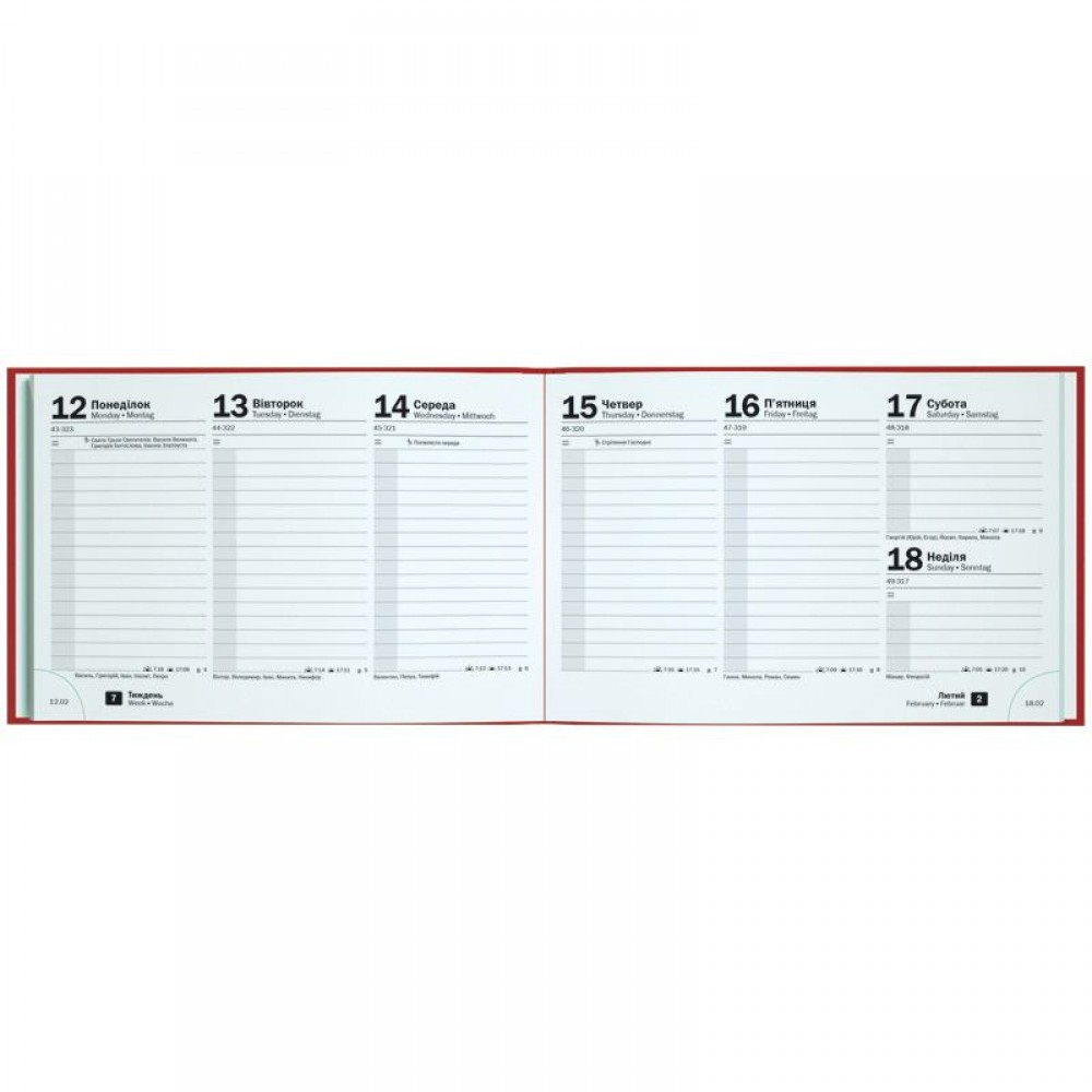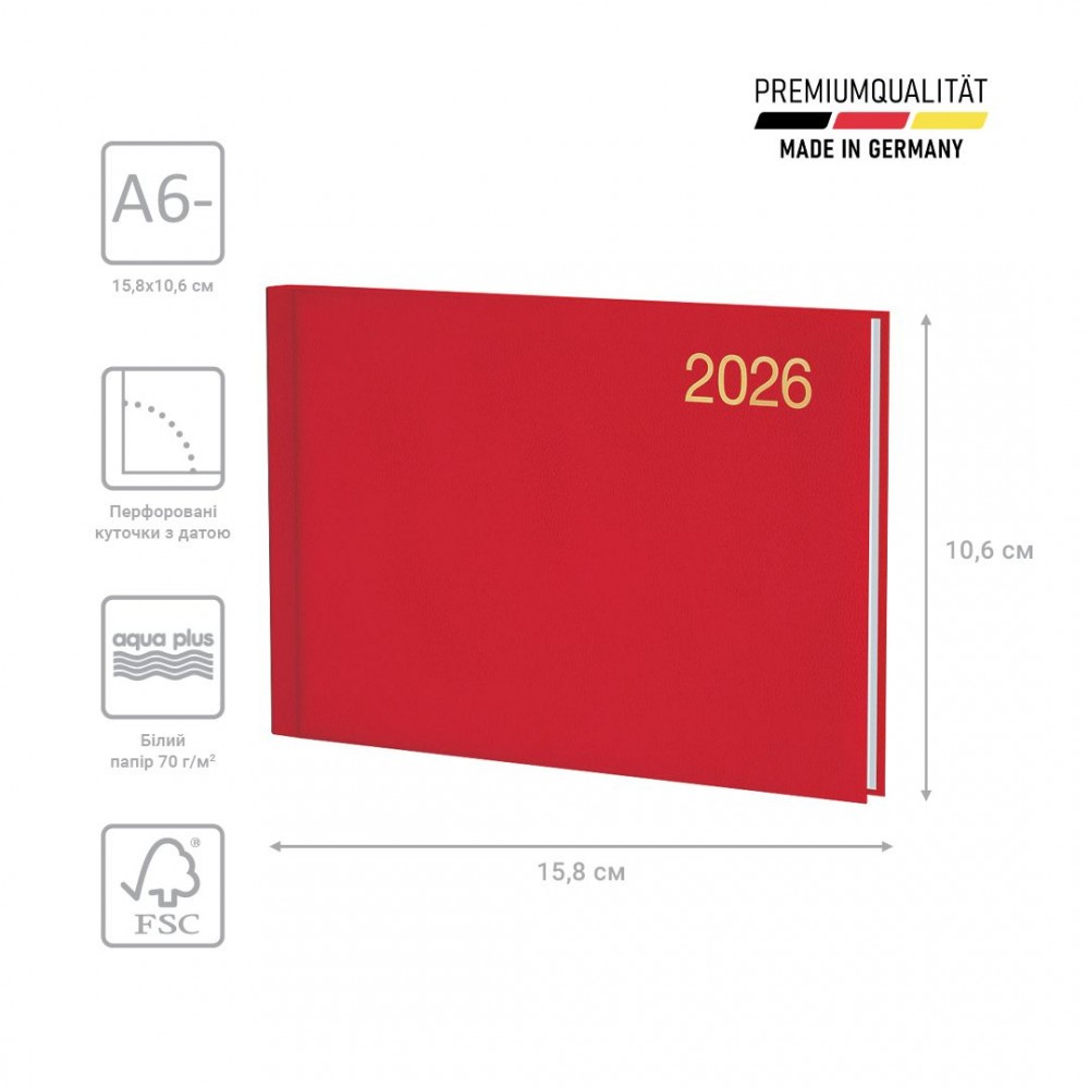 Щотижневик 2026 кишеньковий Brunnen – стильний та компактний інструмент для планування. Особливості: Три мови: українська, англійська, німецька. Кишеньковий формат А6-. Дві сторінки – один тиждень. Інформаційний блок. Перфоровані датовані куточки. Якісний друк у сірому кольорі. Перфоровані сторінки у кінці. Алфавітна записна книга. Вишукані кремові форзаци. Кріплення по вертикалі. Сторінки загального планування на рік. Стильна обкладинка Miradur. Золоте тиснення.