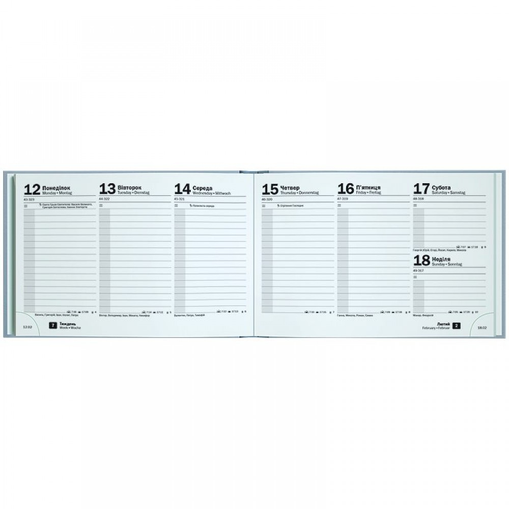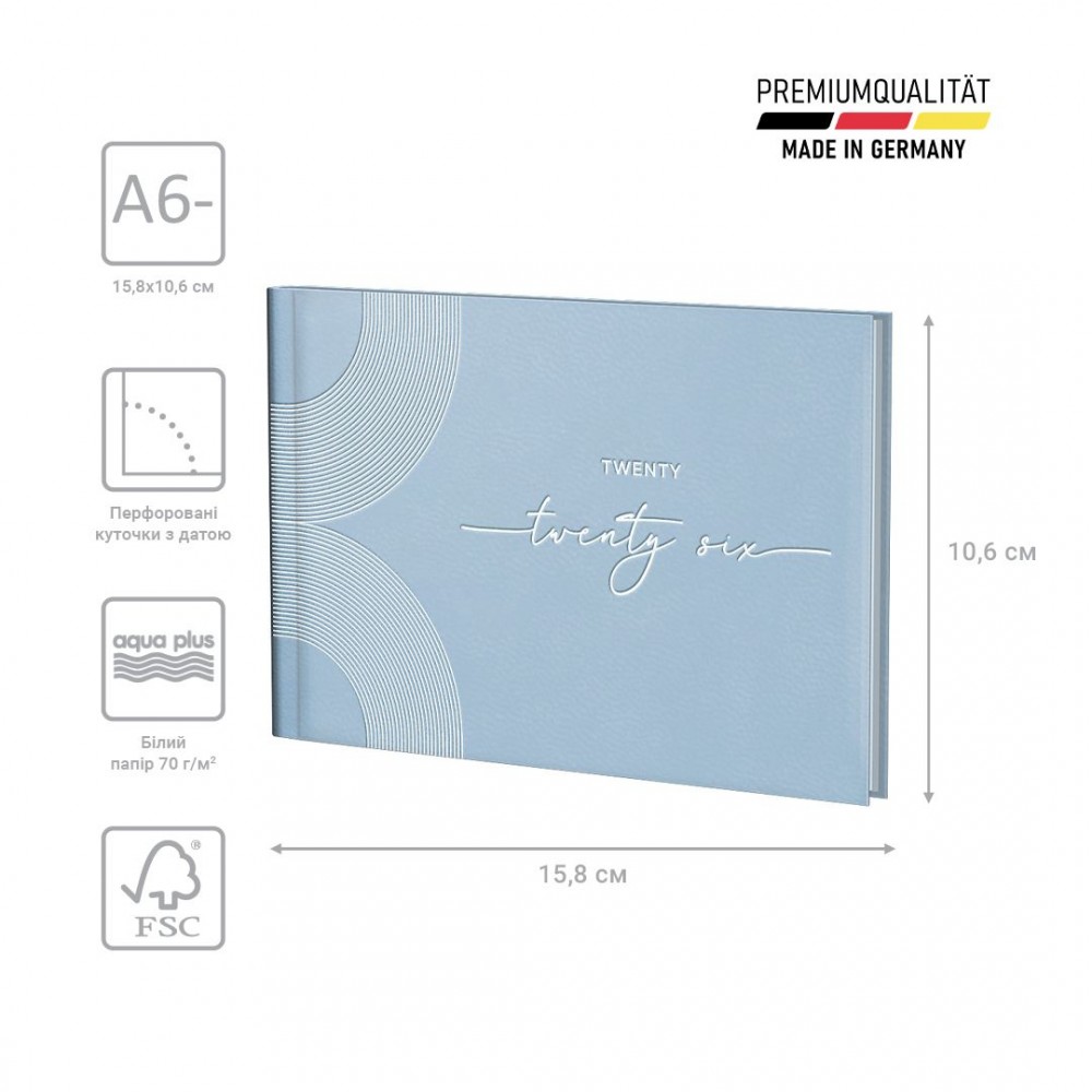 Щотижневик 2026 кишеньковий Brunnen – стильний та компактний інструмент для планування. Особливості: Три мови: українська, англійська, німецька. Кишеньковий формат А6-. Дві сторінки – один тиждень. Інформаційний блок. Перфоровані датовані куточки. Якісний друк у сірому кольорі. Перфоровані сторінки у кінці. Алфавітна записна книга. Вишукані кремові форзаци. Кріплення по вертикалі. Сторінки загального планування на рік. Стильна обкладинка Torino Trend. Біле тиснення.