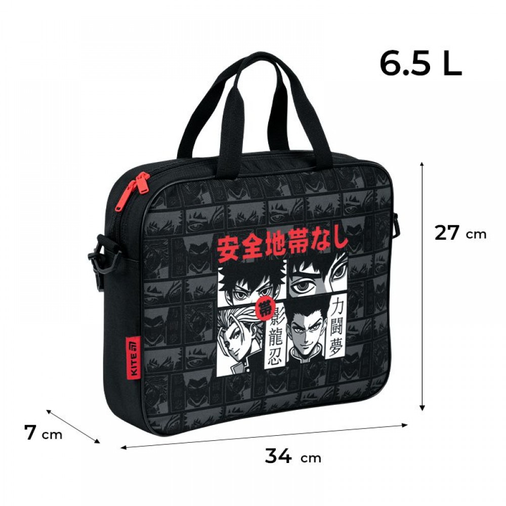 1 віділення на блискавці, внутрішня кишеня, регульований ремінь на карабінах.