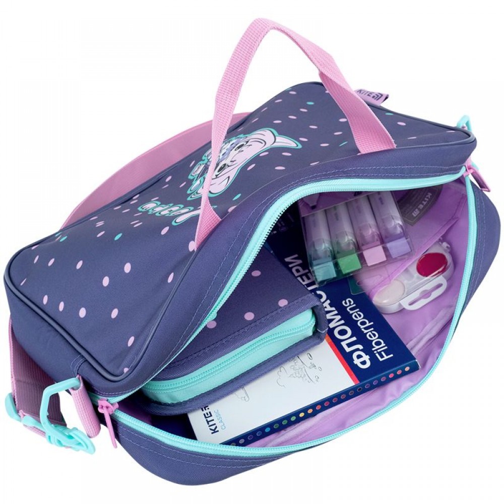 1 віділення на блискавці, внутрішня кишеня, регульований ремінь на карабінах.