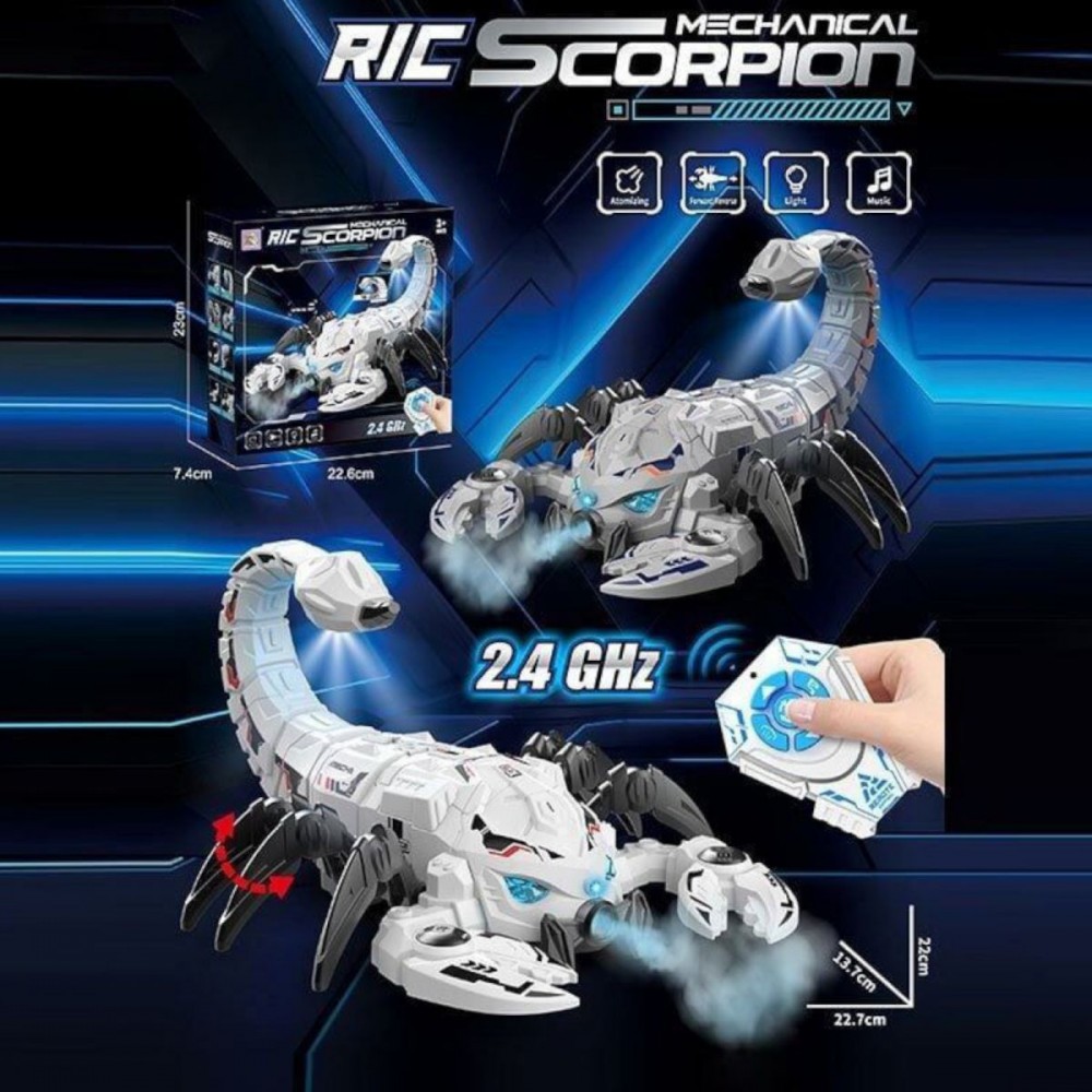 Інтернет-магазин eToys пропонує вашій увазі товар "Скорпіон на радіокеруванні 2 вида, підсвічування, від батарейок, звуки, парогенерація, проєктор, ходить, мелодії, пульт 2.4 GHz, в коробці" за ціною 802 грн..