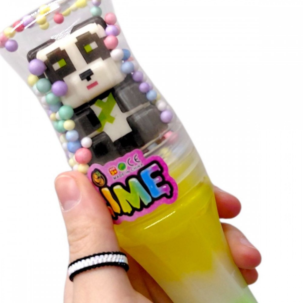 Слайм розміщений у прозорій колбі, що дозволяє бачити фігурку та різнокольорові кульки. М’яка тягуча консистенція робить гру захопливою та допомагає розвивати тактильні відчуття.