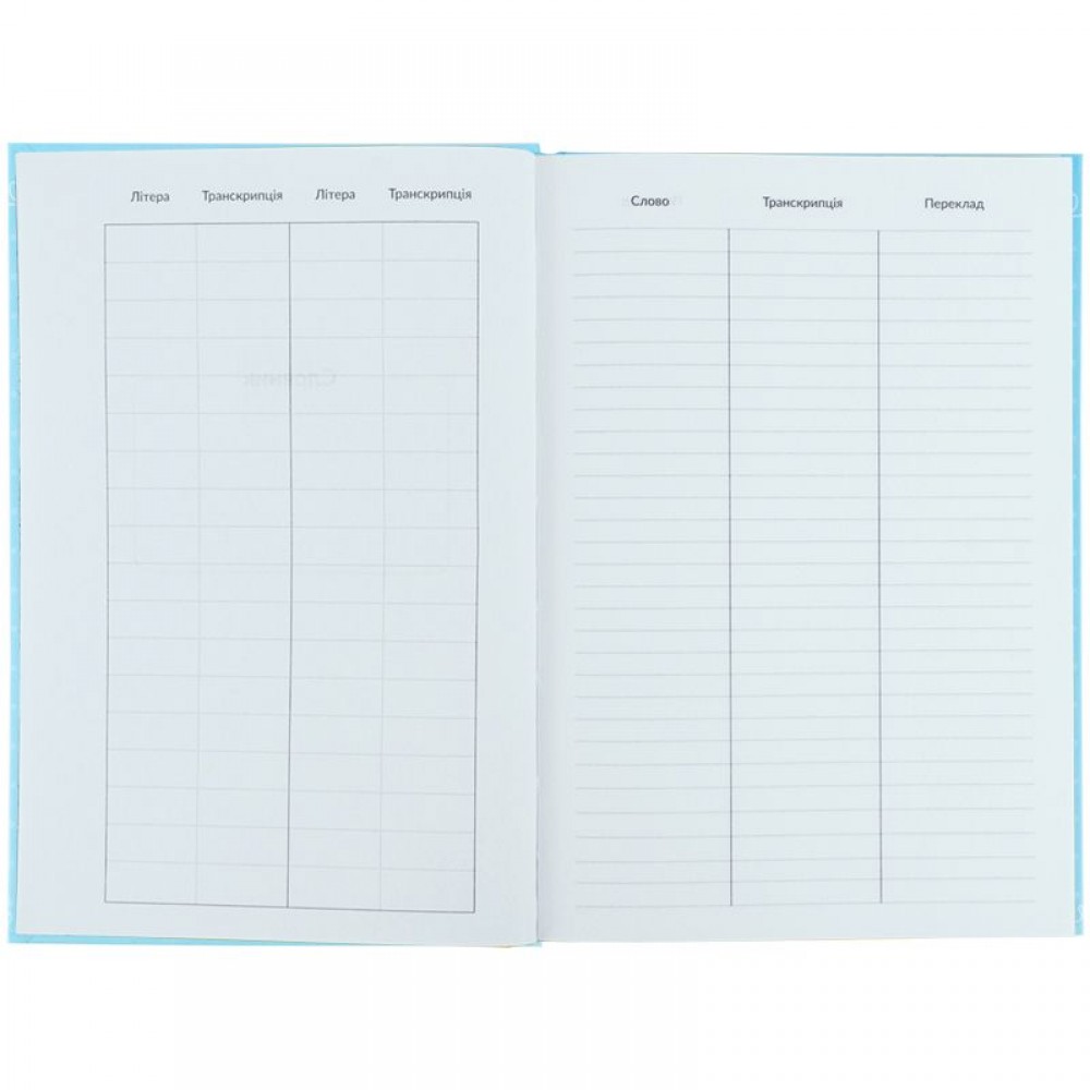 Словник для запису іноземних слів, 60 арк., 65г/м2, тв. обкладинка, ламінування, вибірковий уф лак; розмір 145*210 мм.