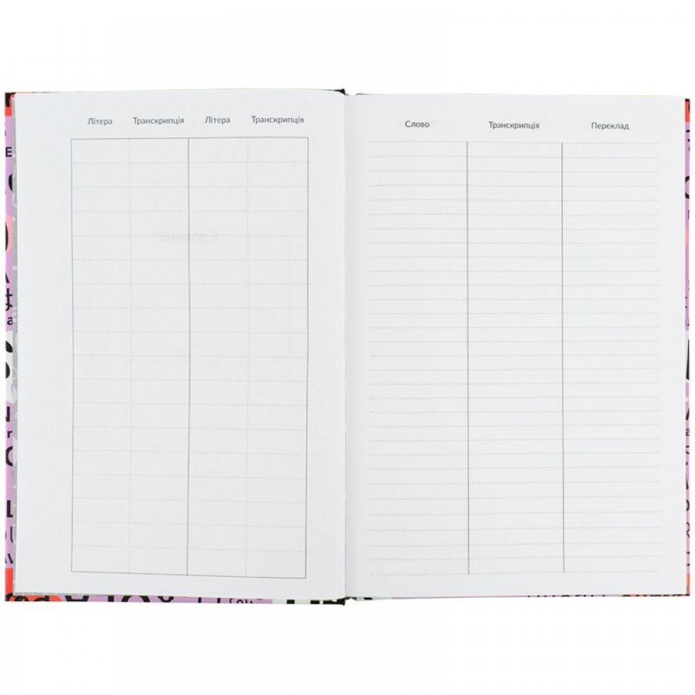 Словник для запису іноземних слів, 60 арк., 65г/м2, тв. обкладинка, ламінування, вибірковий уф лак; розмір 145*210 мм.