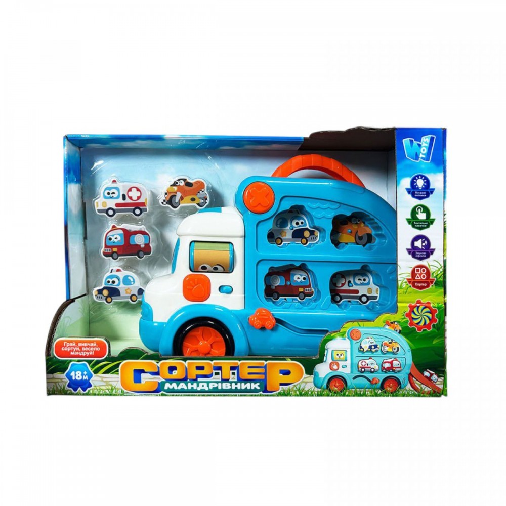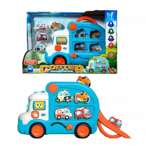 Інтернет-магазин eToys пропонує вашій увазі товар "Сортер-мандрівник ОЗВУЧУВАННЯ УКРАЇНСЬКОЮ МОВОЮ, підсвічування, казки, пісні, віршики, знімні машинки, запускач, в коробці" за ціною 780 грн..