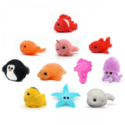 - Іграшки-тварини виготовлені з еластичного матеріалу та чудово тягнуться! Поверхня тварин зроблена в вигляді резинової «щіточки». Вона дуже приємна на дотик! Така іграшка допоможе малюкам розвивати сенсорику та дрібну моторику, а дорослим - знімати стрес!