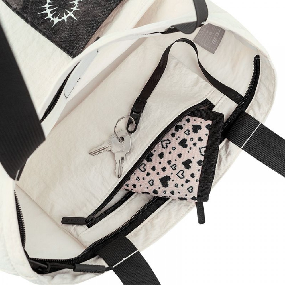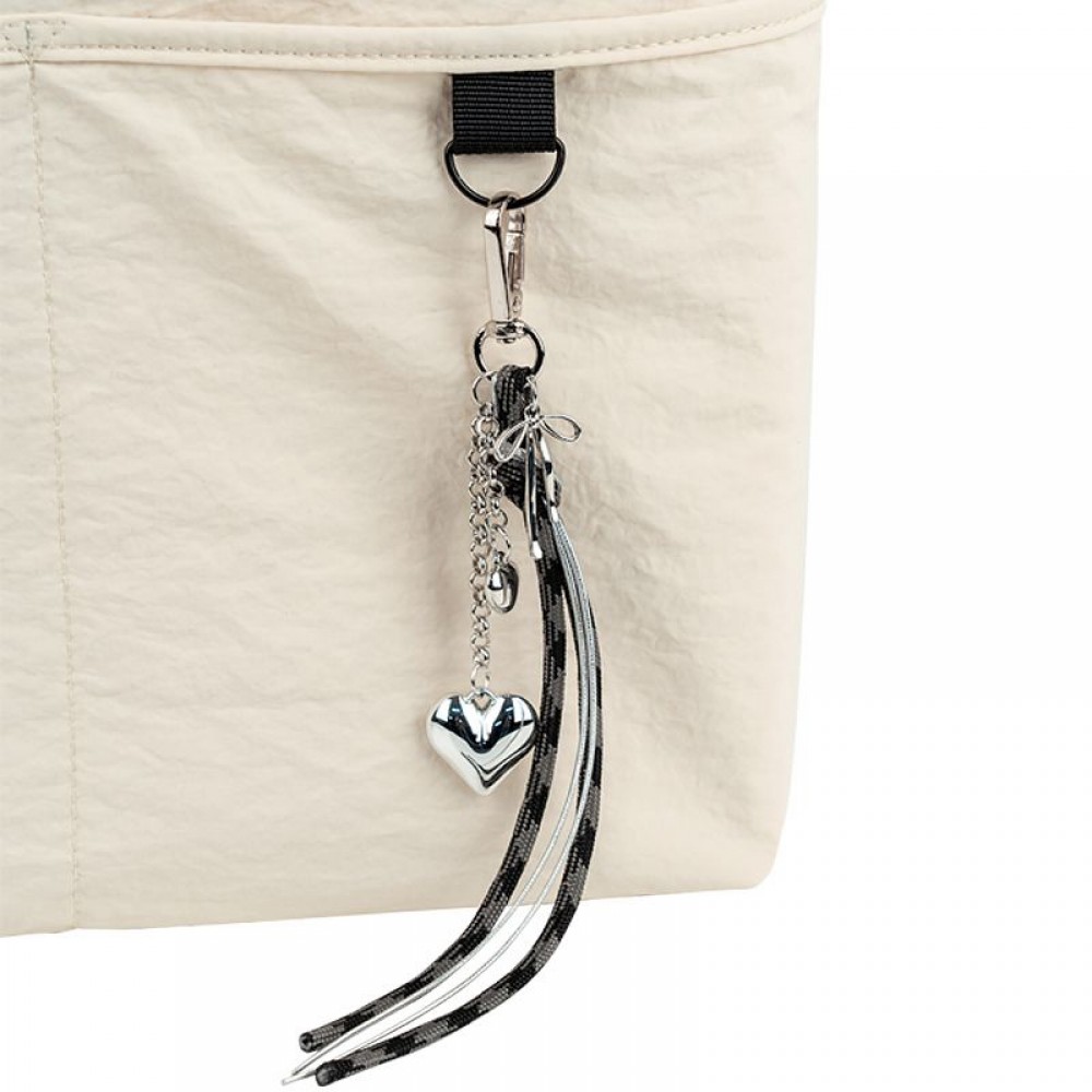 Сумка зовні: 1 відділення; 3 передні кишені; зносостійкі блискавки; надійна фурнітура. Сумка всередині: 1 внутрішня кишеня на блискаці; ключниця. Декор: сумка виконаний із поліестеру з жатим ефектом, кишеня з вимитого джинсу, підвіска-брелок з комбінованих матеріалів.