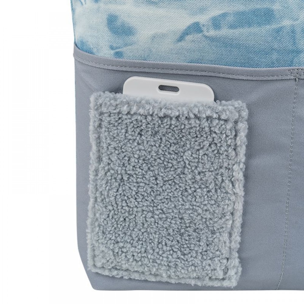 Сумка зовні: 1 відділення; 3 передні кишені; зносостійкі блискавки; надійна фурнітура. Сумка всередині: 1 внутрішня кишеня на блискаці; ключниця. Декор: сумка виконана з вимитого джинсу, кишеня з Тедді плюшу, підвіска-брелок з комбінованих матеріалів.