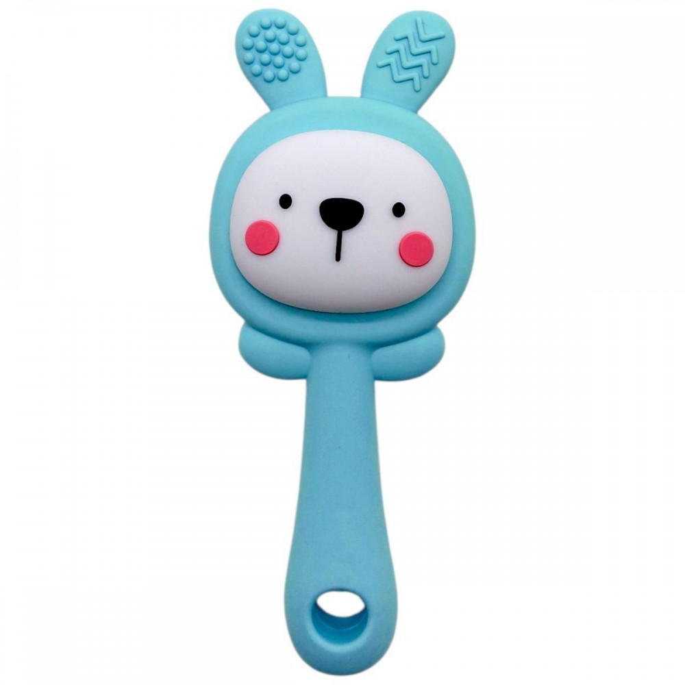 Прорізувач-брязкальце виконаний у формі зайчика з приємною палітрою. Рельєфні елементи на вушках сприяють масажу ясен у період прорізування зубів, допомагаючи дитині легше переносити цей етап.