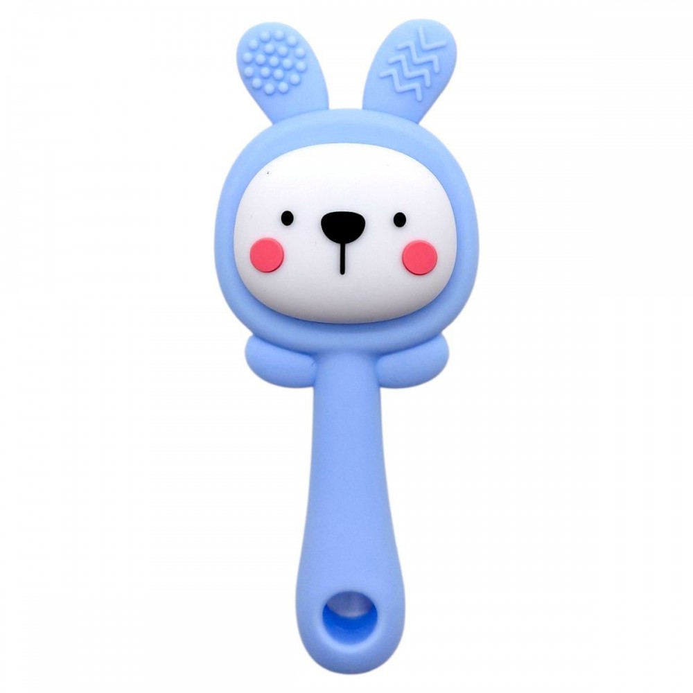 Прорізувач-брязкальце виконаний у формі зайчика з приємною палітрою. Рельєфні елементи на вушках сприяють масажу ясен у період прорізування зубів, допомагаючи дитині легше переносити цей етап.