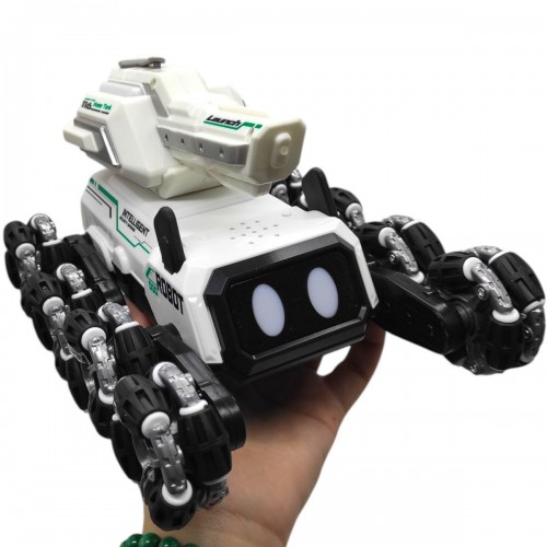 Танк на радіокеруванні вразить будь-якого юного фаната техніки! Завдяки унікальній конструкції коліс він легко долає перешкоди, виконує ефектні розвороти та маневри. Модель має світлові й звукові ефекти, змінює положення корпусу та стріляє водою, перетворюючи кожен заїзд на справжню пригодницьку битву. Це іграшка, що подарує море драйву та допоможе розвинути координацію й реакцію. Іграшка працює від акумулятора 3.7V, який разом із USB-кабелем додано до комплекту, проте сенсорний браслет керування працює від 2-х батарейок типу “ААА” та пульт керування працює від 2-х батарейок типу “АА” (яких немає у комплекті). Має підсвічування (можна вимкнути), звуки та музика і режим демонстрації. Може стріляти водою що є цікавим елементом під час гри, до набору додано піпетку, тому воду буде легко набрати. Виконаний з якісного пластику.