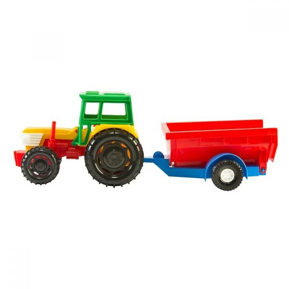 Яскравий, пластиковий трактор буде хорошим подарунком дитині. Іграшка проста в управлінні. Причіп відкривається / закривається. Виконана з якісного пластику. Для дітей від 3-х років.