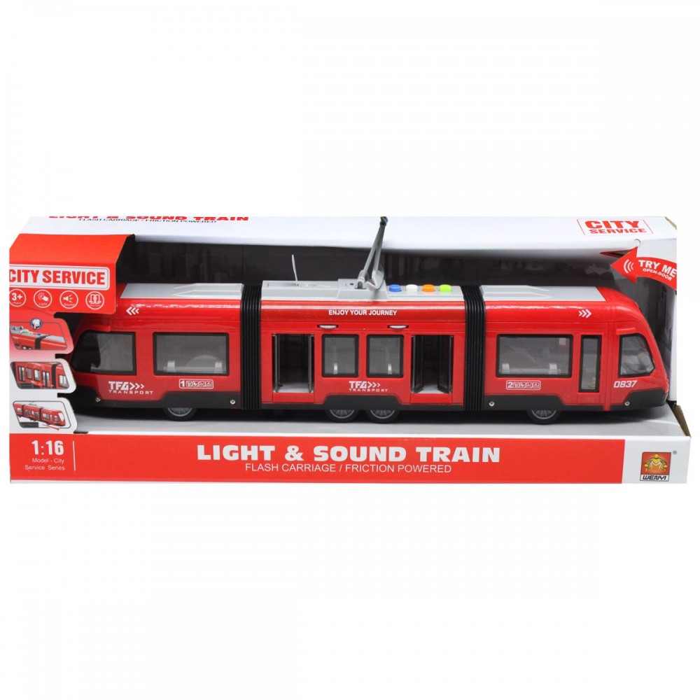 Пластикова машинка "Трамвай" буде відмінним подарунком для малюка. Є світлові і звукові ефекти: світиться кабіна, звук мотора. Розмір трамвая - 43х11 см. Виконано з якісного пластику. Для дітей від 3-х років.