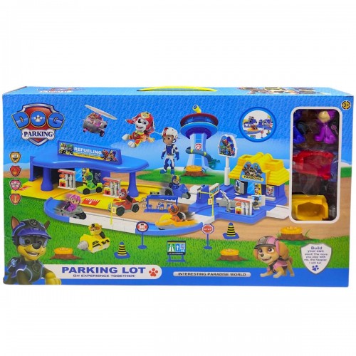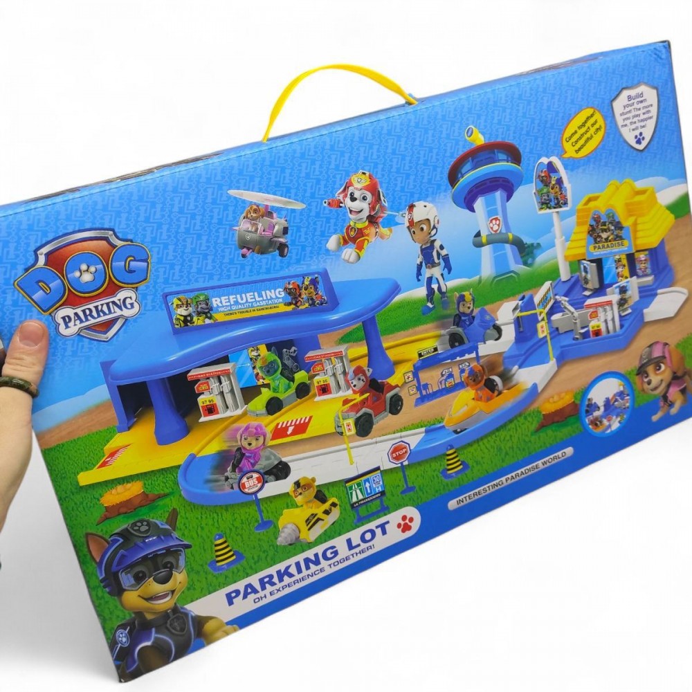 Трек, 2 машинки, 2 знімні фігурки песиків-водіїв, розмаїття аксесуарів і тематичні наліпки.
