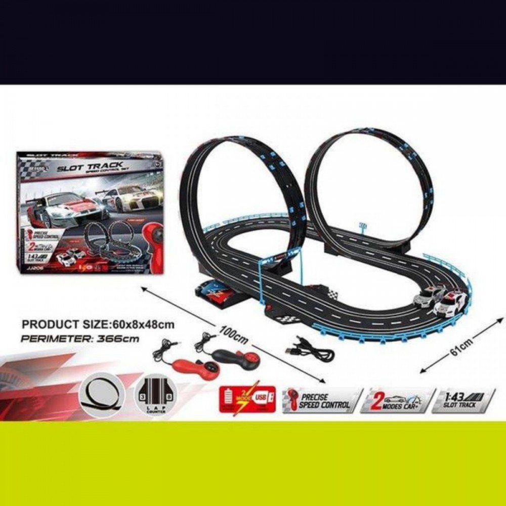 Інтернет-магазин eToys пропонує вашій увазі товар "Трек на радіокеруванні траса 61х100 см, підсвічування, 2 машинки, мертва петля, 2 пульти керування, підключення до траси за допомогою проводу, від батарейок та від мережі, в коробці" за ціною 2 336 грн..