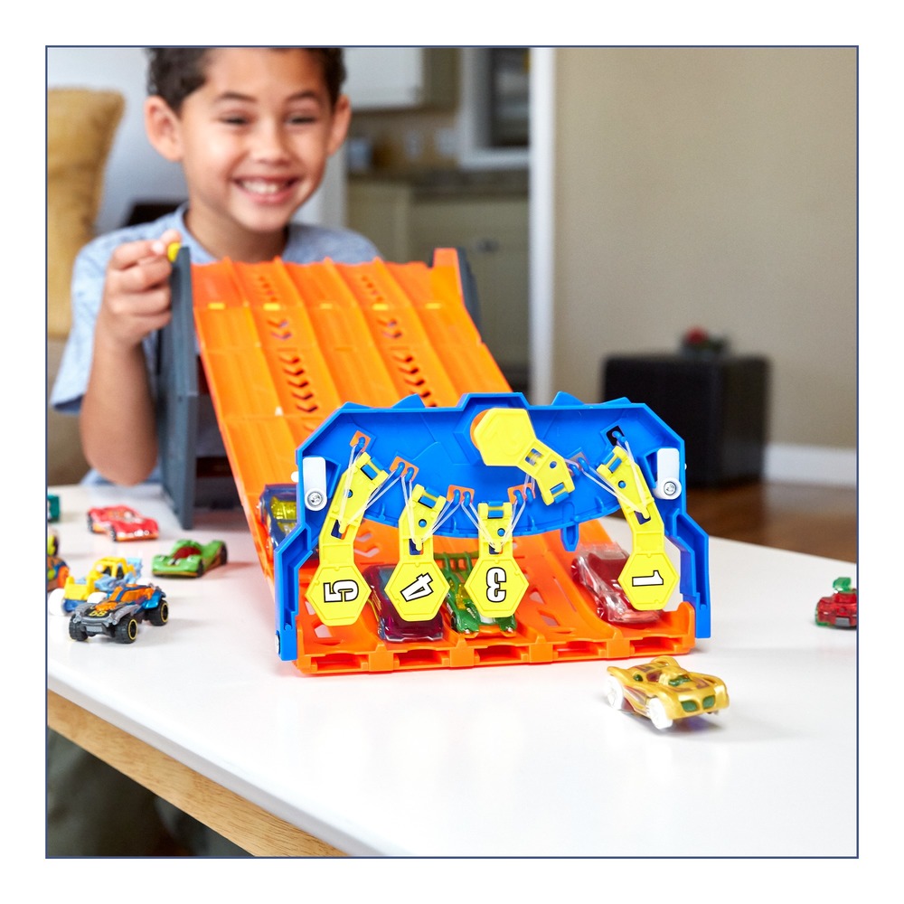 Участь у змаганнях можуть одночасно брати до п’яти машинок. Завдяки механізму одночасного старту ніхто не отримає несправедливої переваги. Машинка-переможець відкидає щиток зі своїм номером, і він з’являється у віконці над лінією фінішу, тож ситуацій, коли неможливо визначити переможця, більше не буде!