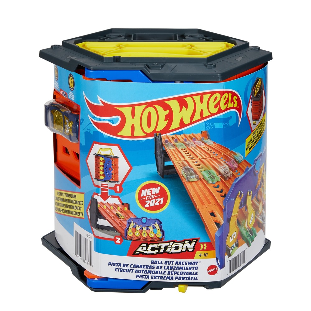 Трек "Перегони" Hot Wheels - це неймовірно крутий набір, який ідеально підходить не лише для видовищних перегонів, а й для зручного зберігання машинок! У складеному вигляді трек "Перегони" Hot Wheels виконує функцію зручного портативного контейнера для зберігання, у якому поміщається до 80 базових машинок і 5 елементів треку. Однак якщо його розкласти, утвориться трек із 5 трасами, на якому можна влаштовувати перегони відразу декількох машинок.