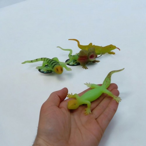 Іграшка-тягучка (антистрес) у вигляді ящірки. Головною особливістю є те, що іграшка світиться в темноті (є люмінесце́нтною). Фігурка дуже приємна на дотик. Вона чудово підходить для того, щоб мʼяти, тягнути і розтягувати, забезпечуючи заспокійливий ефект та допомагаючи зняти стрес. Довжина з хвостом, приблизно 20 см.