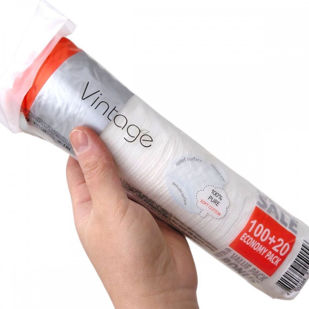 Ватні диски Vintage Economy Pack - це практичний набір для щоденного догляду за шкірою. Упаковка містить 120 дисків, що забезпечує вигідний запас.