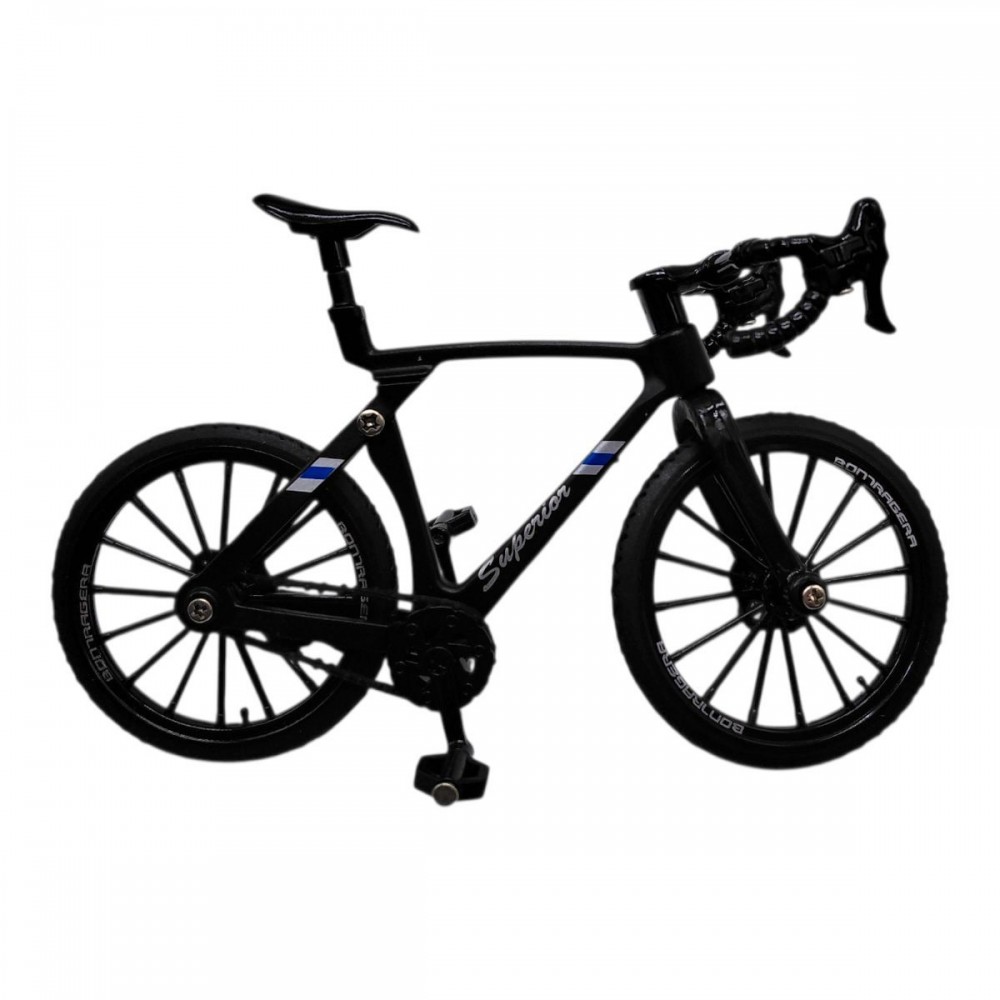 Металевий велосипед у мініатюрі - стильна колекційна модель у чорному кольорі. Деталізоване виконання, компактний розмір та акуратна коробка роблять його чудовим варіантом для подарунка або доповнення до ігрової колекції.