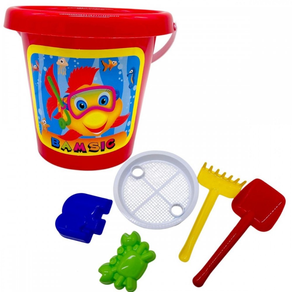 Набір для піску. 5 видів. Відерце, пасочка 2 шт., Лопатка, сито, грабельки. Пластик.