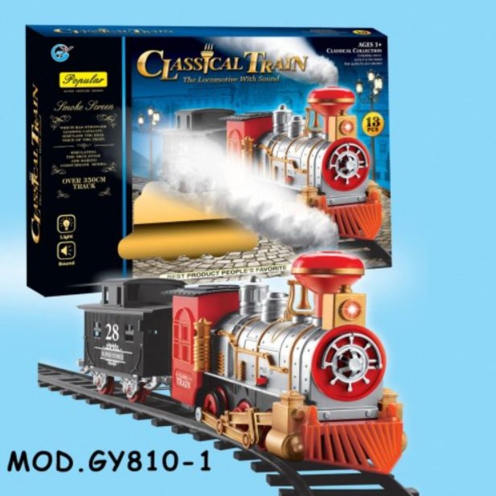 Залізниця "Classical Train" - це цікавий набір з 13 елементів, що включає локомотив, вагон, 10 деталей дороги та платформу. Локомотив рухається вперед, створюючи реалістичні звукові ефекти, світить фарами та випускає дим, занурюючи в атмосферу справжнього поїзда. Працює від 4-х батарейок АА (немає в комплекті). Розмір дороги – 134 х 75 см.
