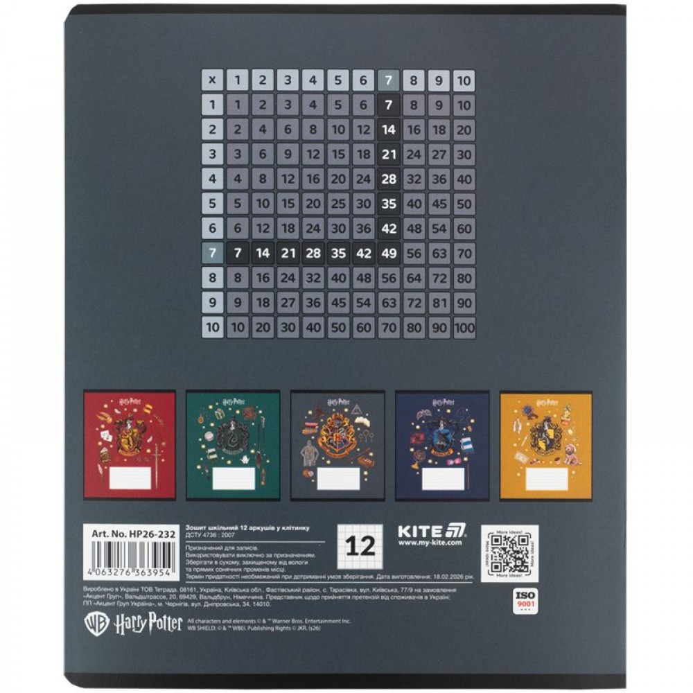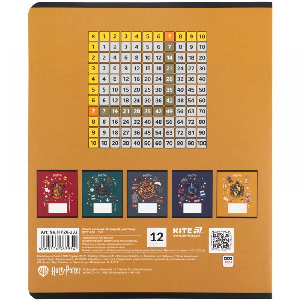 Зошит шкільний на скобі Kite має 12 аркушів, представлений у зручному форматі А5. Аркуші в зошиті зроблені зі щільного паперу, розлініяні в клітинку. Виріб представлено в ущільненій кольоровій обкладинці з ліцензованим зображенням в 5 дизайнах. Ефект на обкладинці: вибірковий УФ лак та фольга. Кольорова задруківка форзаца.