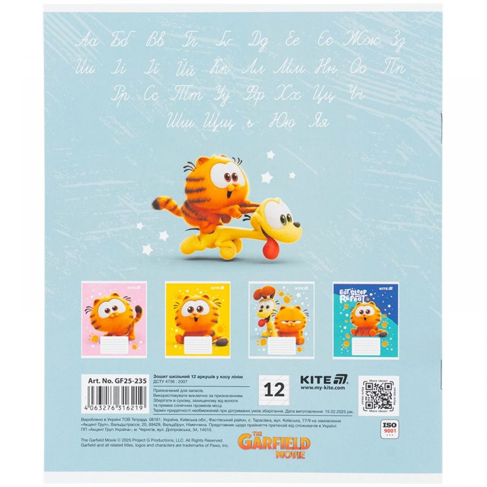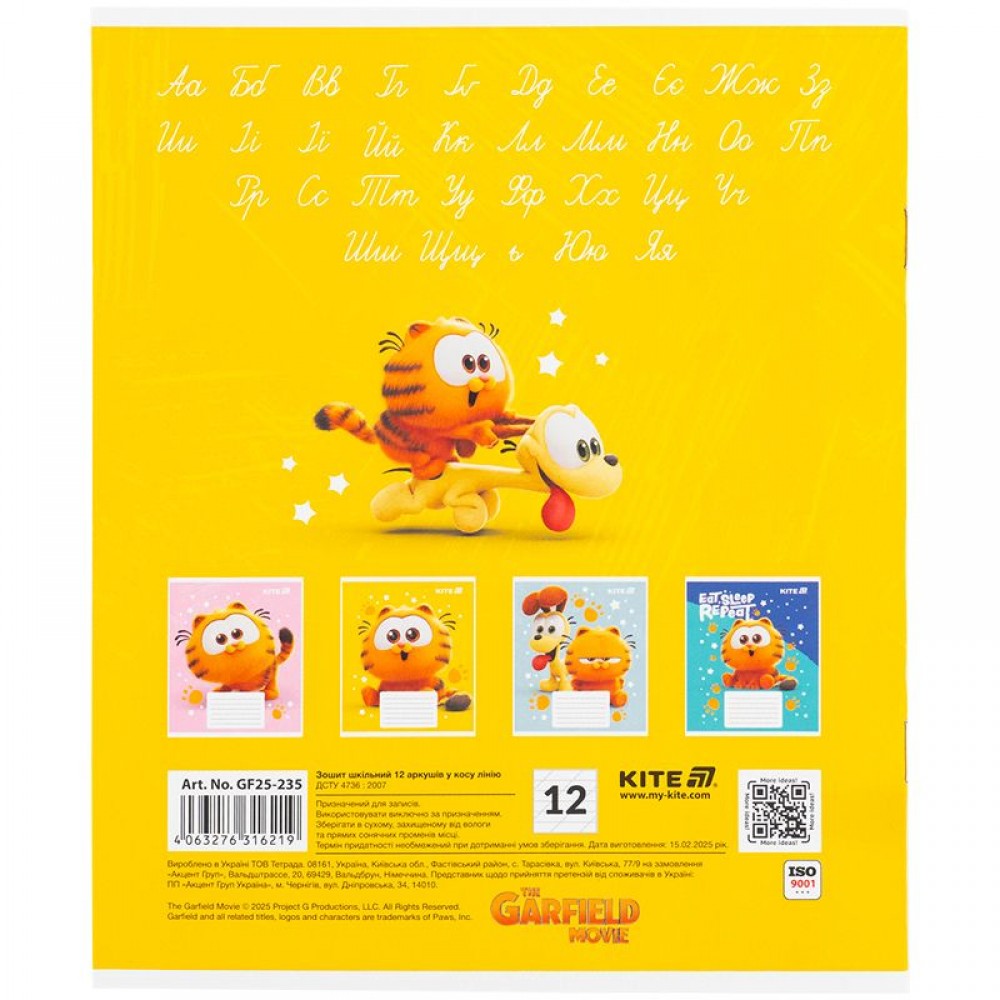 Зошит шкільний на скобі Kite має 12 аркушів, представлений у зручному форматі А5. Аркуші в зошиті зроблені зі щільного паперу, розлініяні в косу лінію. Виріб представлено в ущільненій кольоровій обкладинці з ліцензованим зображенням в 4 дизайнах. Ефект на обкладинці: софт тачк та вибірковий УФ-лак. Кольорова задруківка форзаца.