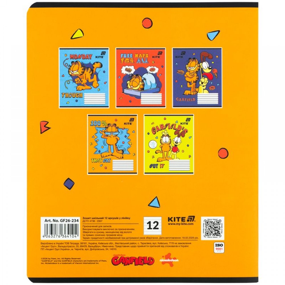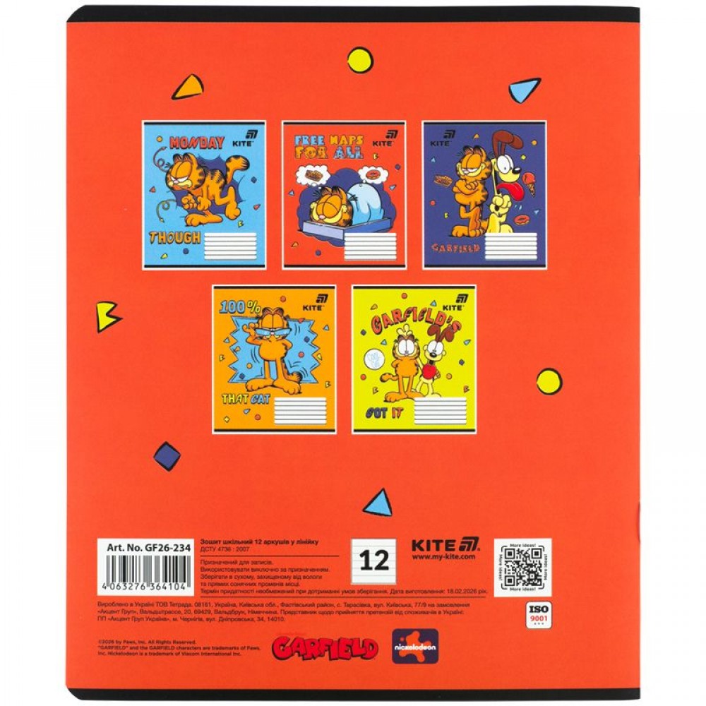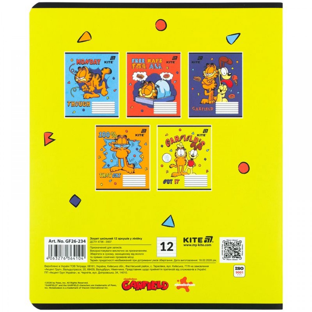 Зошит шкільний на скобі Kite має 12 аркушів, представлений у зручному форматі А5. Аркуші в зошиті зроблені зі щільного паперу, розлініяні в лінію. Виріб представлено в ущільненій кольоровій обкладинці з ліцензованими зображеннями в 5 дизайнах. Ефект на обкладинці: софттач та вибірковий УФ-лак.