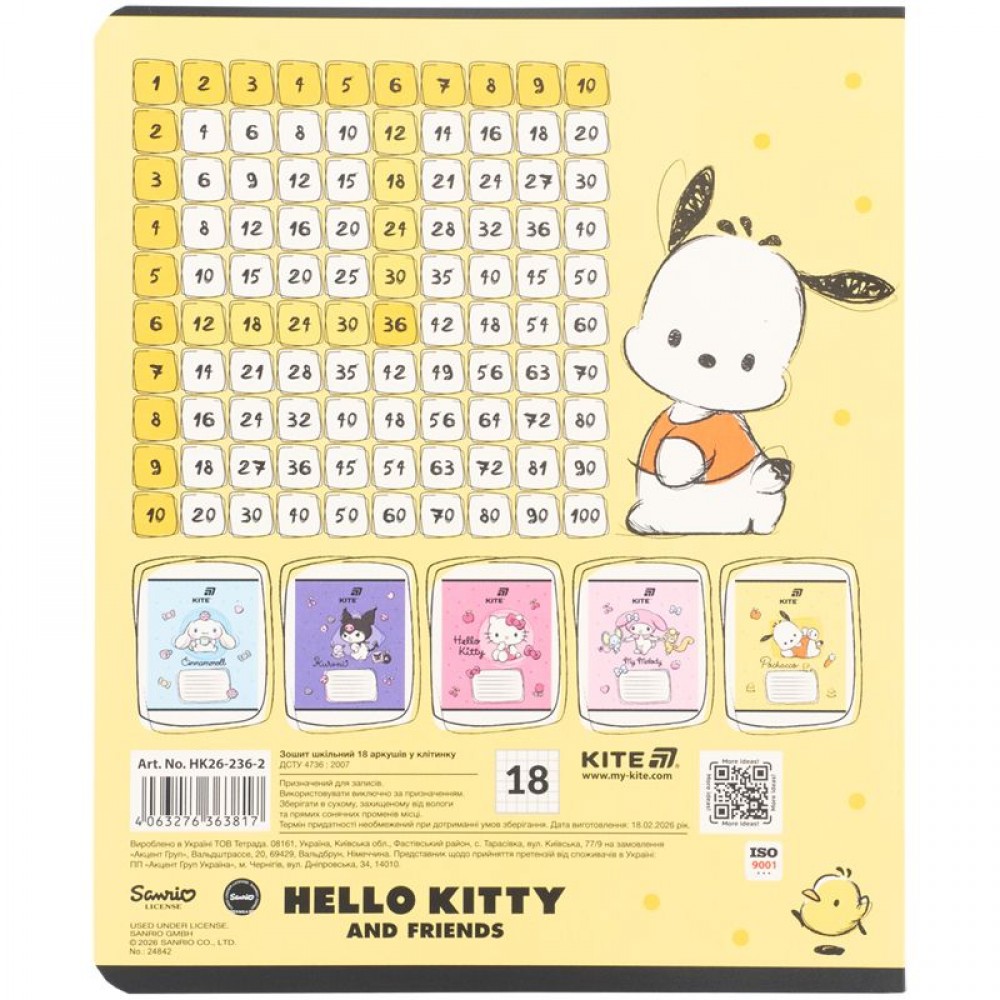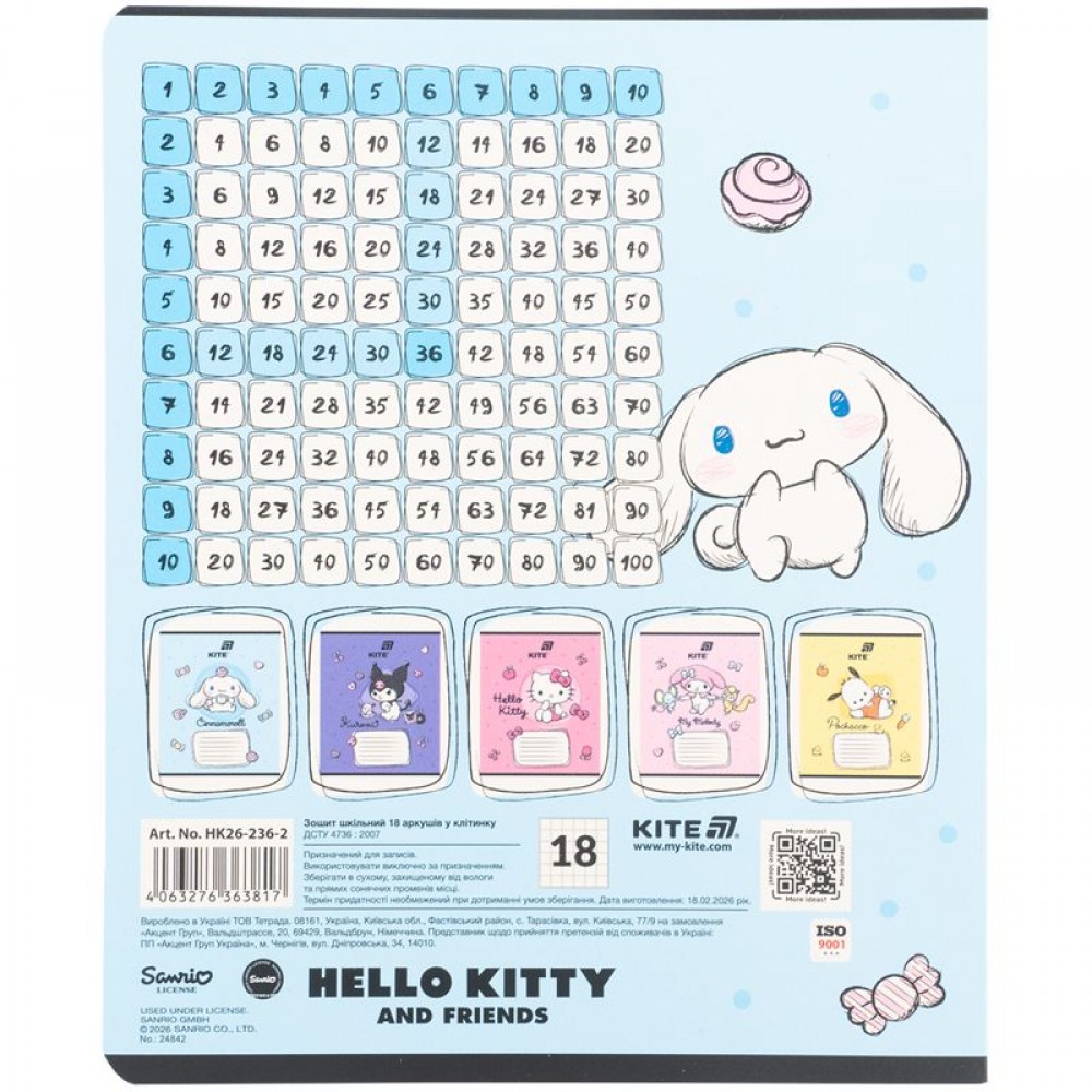 Зошит шкільний на скобі Kite має 18 аркушів, представлений у зручному форматі А5. Аркуші в зошиті зроблені зі щільного паперу, розлініяні в клітинку. Виріб представлено в ущільненій кольоровій обкладинці з ліцензованим зображеннями в 5 дизайнах. Ефект на обкладинці: софт тач + УФ лак. Кольорова задруківка форзаца.